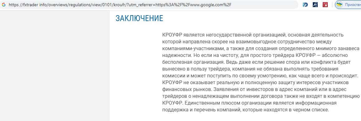 Компетентный портал пришел к выводу о бесполезности работы трейдеров с лжеконторой КРОУФР