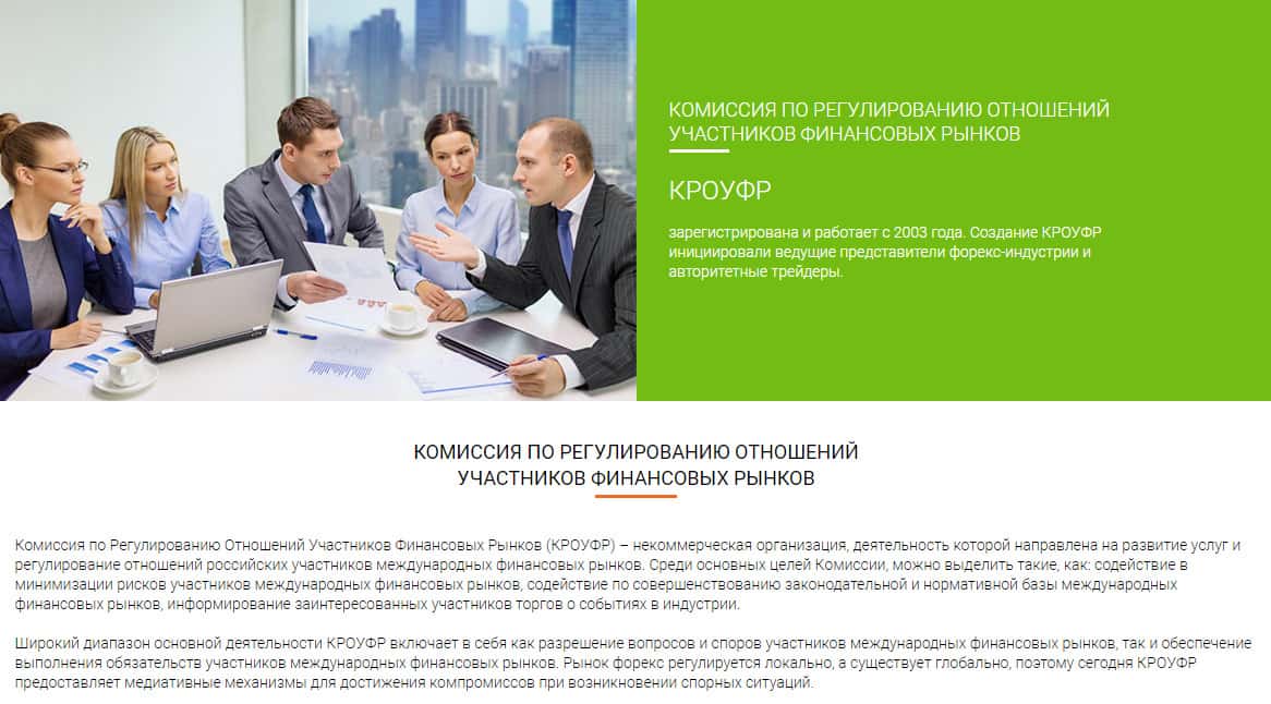 Заканчивается веб-площадка у форекс кухни KROUFR Ru размещается раздел о тех преимуществах, которые якобы предоставляет трейдерам финансовый регулятор: например, обеспечение условий и координация деятельности участников международных финансовых рынков. На самом же деле, просто прикрывает аферы жульнических форекс дилеров.