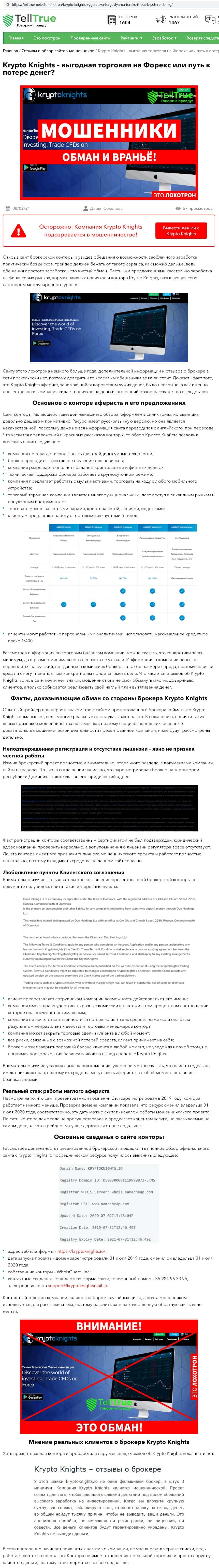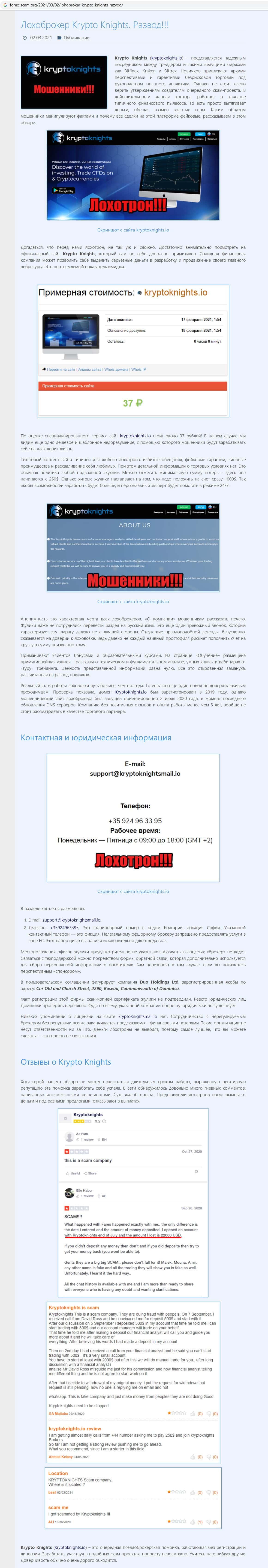 Обзоры лжеброкера Крипто Кнайгхтс на различных ресурсах сети Интернет