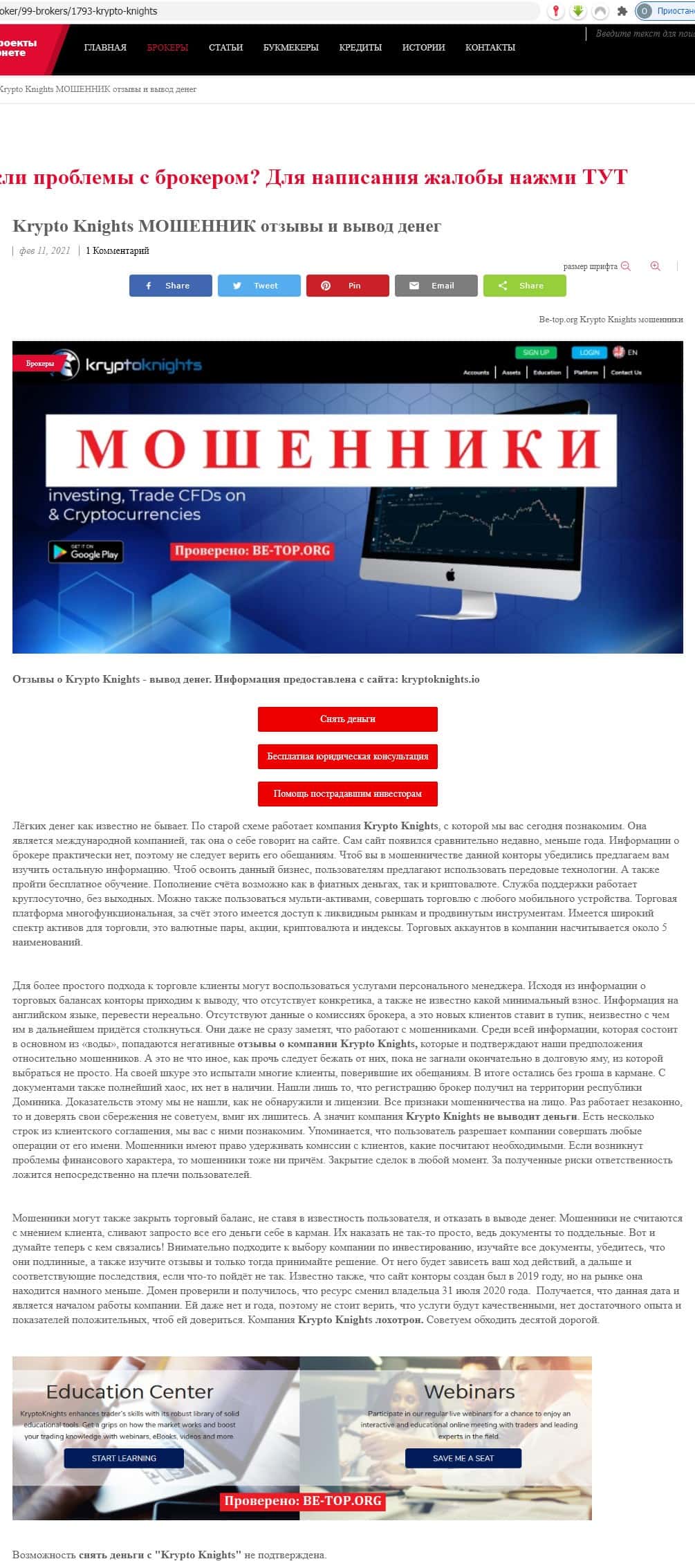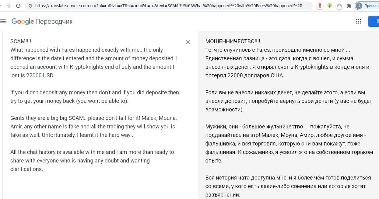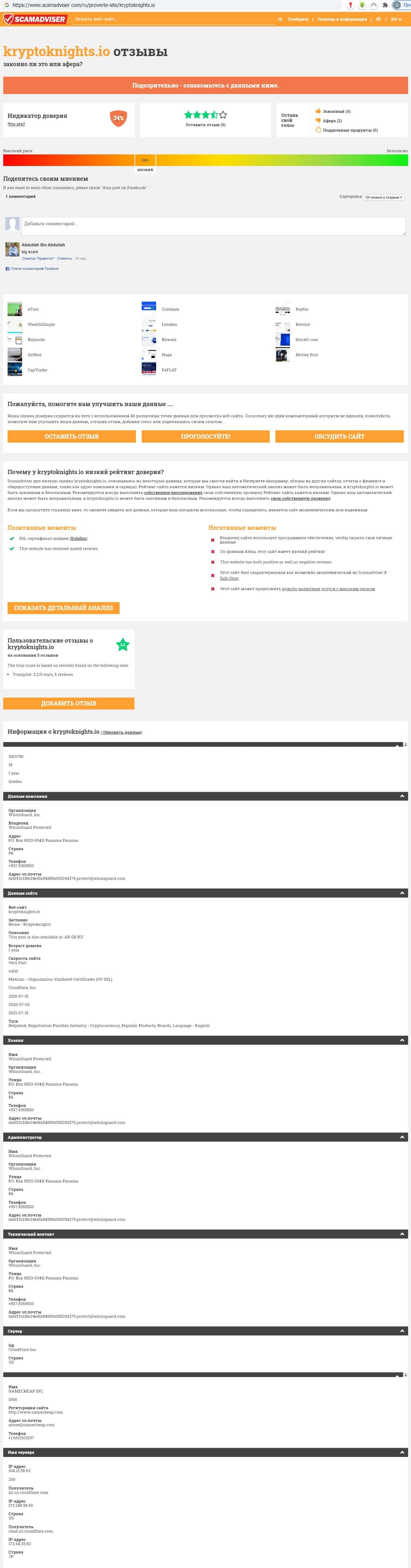 - Обзоры лжеброкера Крипто Кнайгхтс на различных ресурсах сети Интернет