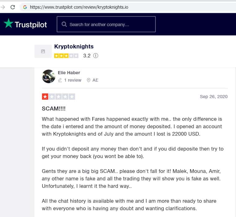 На портале trustpilot размещен пост трейдера, попытавшего счастья и инвестировавшего на брокерскую площадку KryptoKnights io своих двадцать две тысячи американских долларов.