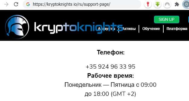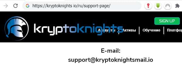 Контактные данные жуликов и аферистов лжеброкера Krypto Knights