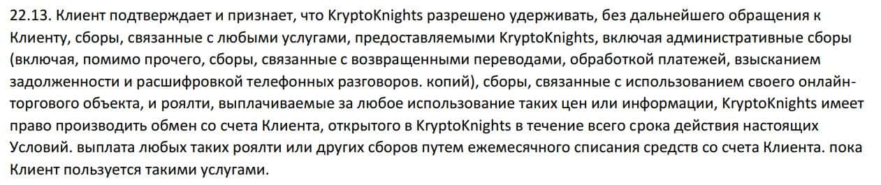 - Тонкости и несуразности клиентского соглашения на торговой площадке KryptoKnights io
