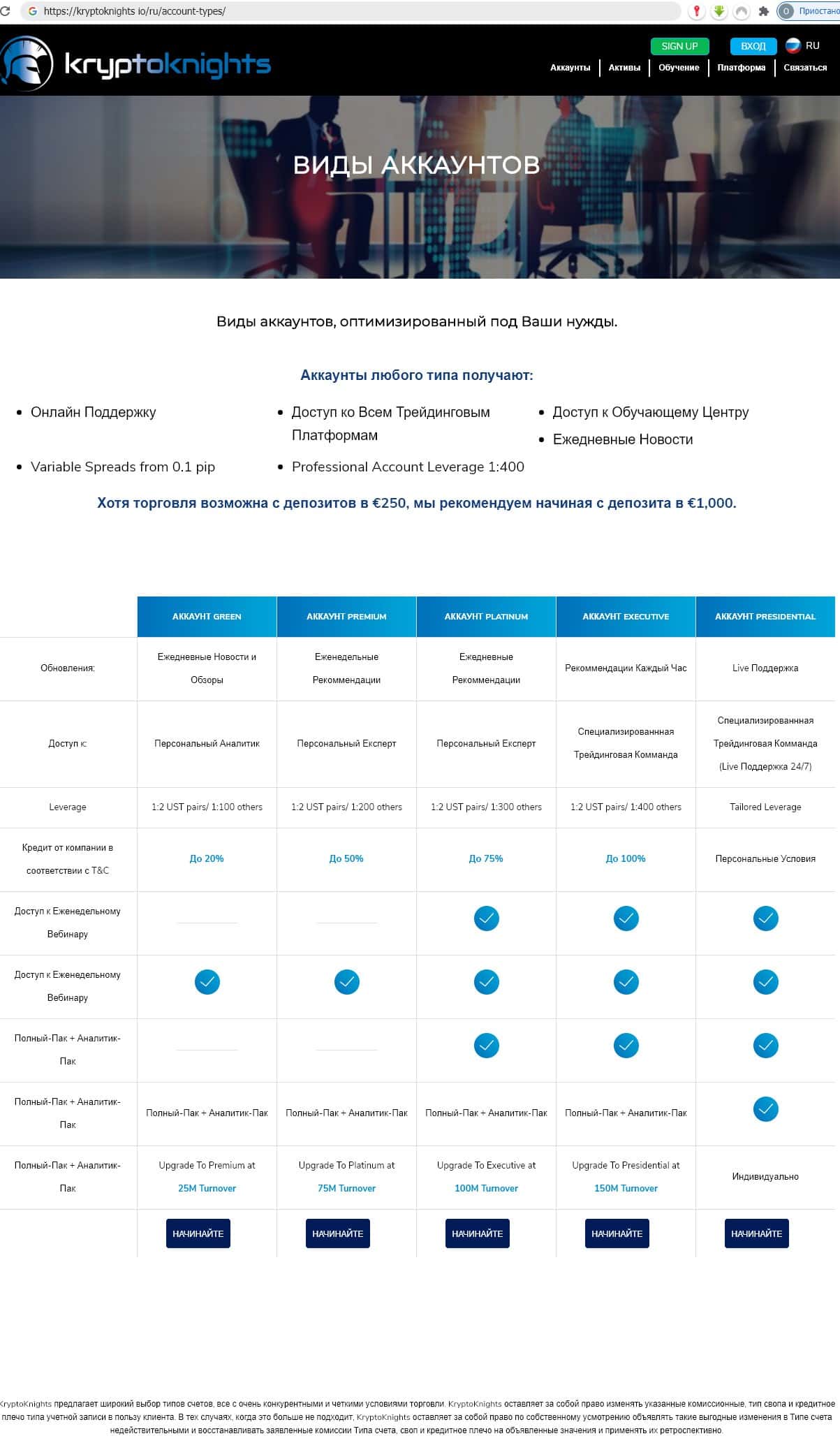 - Типы аккаунтов трейдеров, предлагаемые на брокерской площадке KryptoKnights io