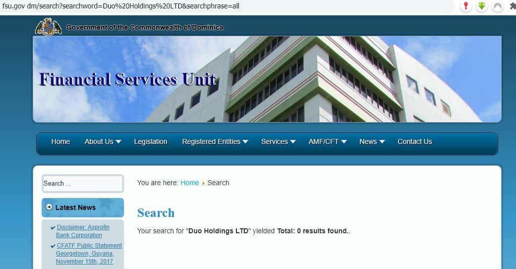 Факт регистрации указанной компании Duo Holdings LTD в подобной юрисдикции установить фактически невозможно, тем более о существовании лицензий у такой фирмы и речи быть не может.