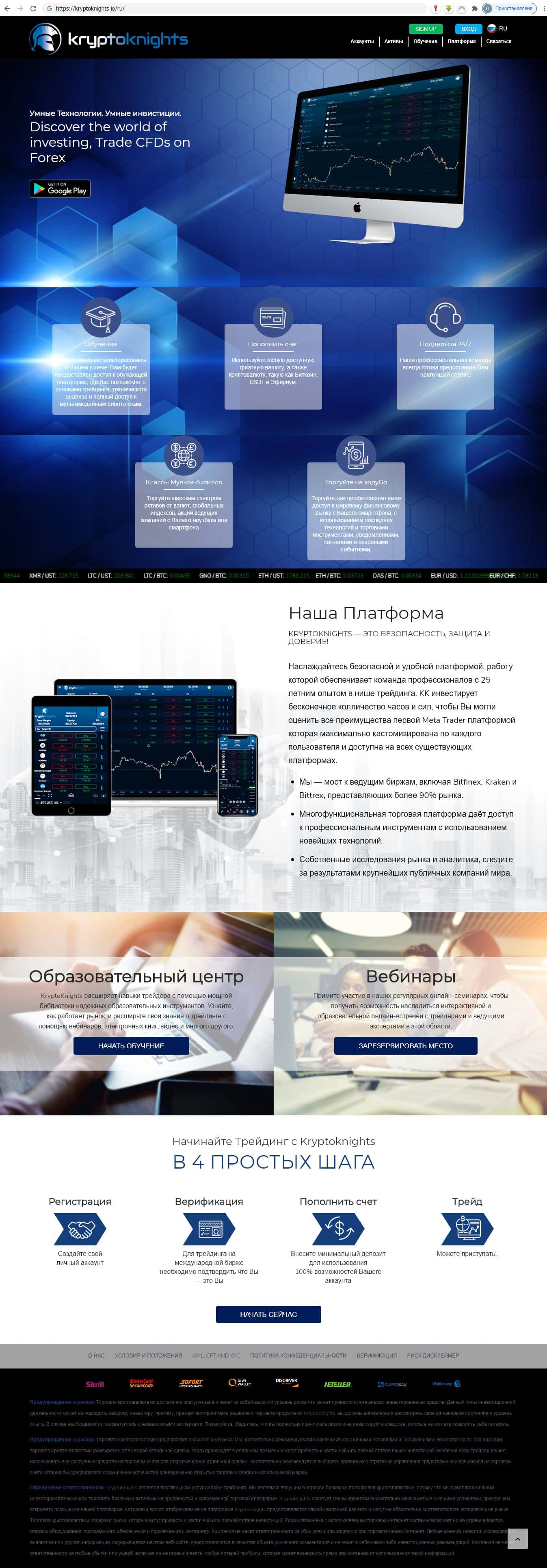 - Знакомство с главной страницей сайта брокерской конторы KryptoKnights io