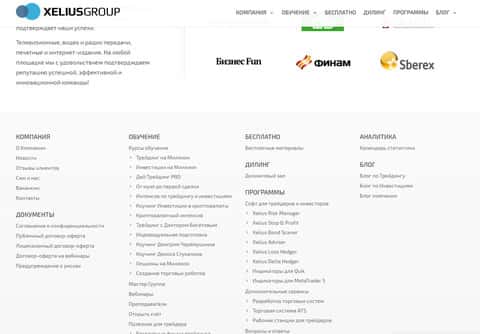 Завершается сайт у лохотрона Xelius довольно стандартно и ожидаемо, а именно довольно объемным меню со ссылками на различные разделы подвального сайта шулеров Кселиус, а так же очередным мотивационным текстом от жуликов Xelius для наивных клиентов. На изображении, расположенном ниже, вы можете увидеть окончание сайта мошенников Кселиус.