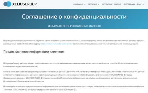 Политика конфиденциальности аферистов Xelius