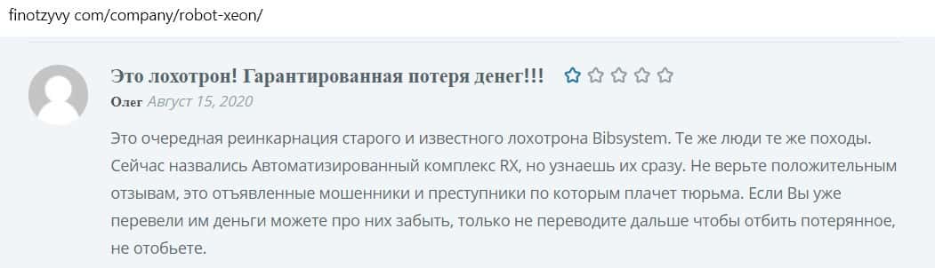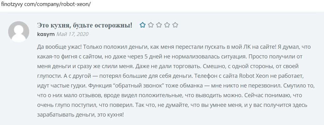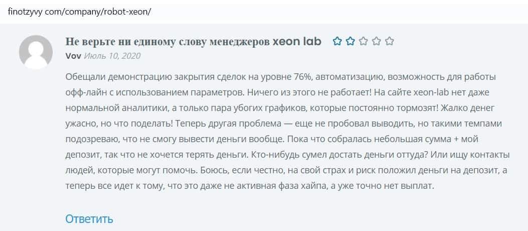 Другой пользователь оставил крайне негативный отзыв о конторе Ксеон Лаб. Это даже не хайп, а вообще полный скам, их робот не работает, сайт откровенная фальшивка.