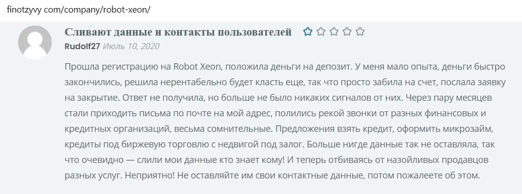 Отзыв пользователя говорит о том, что такие конторы, как Ксеон Лаб сливают информацию о пользователях. Они продают базы данных другим лохотронам.