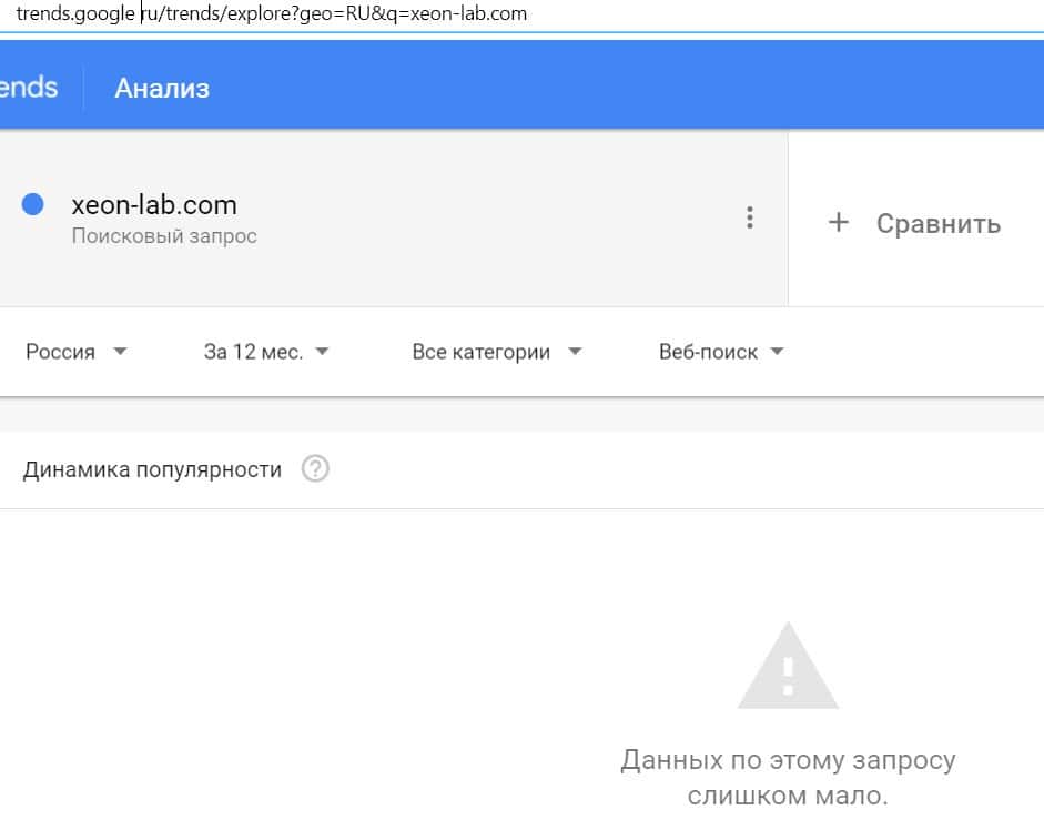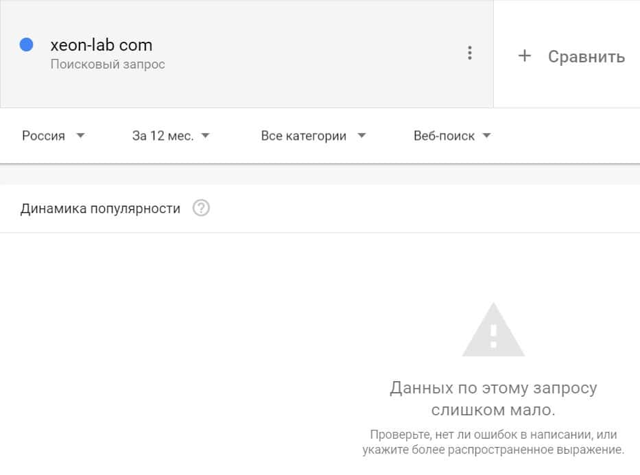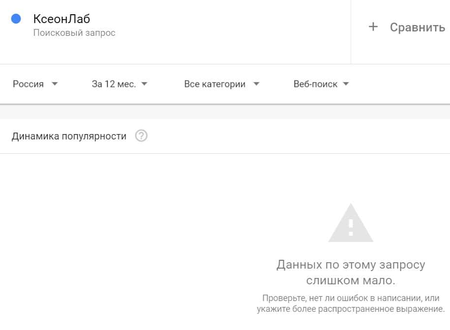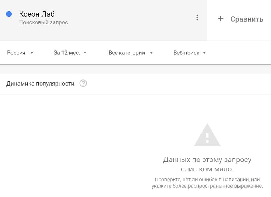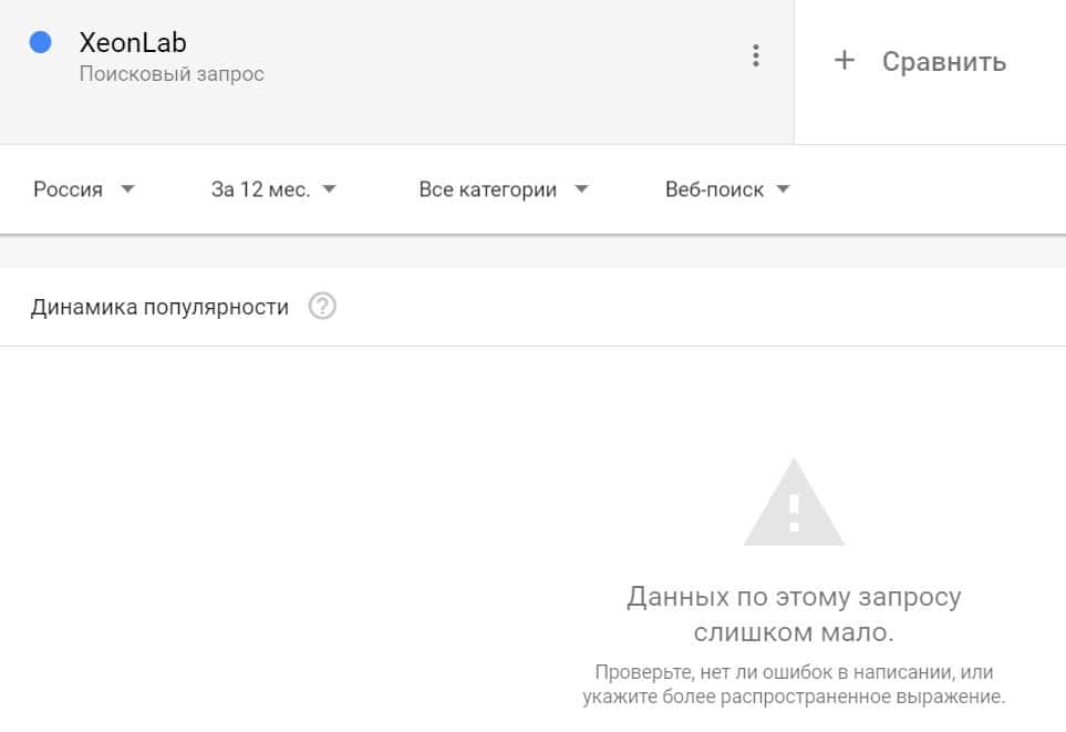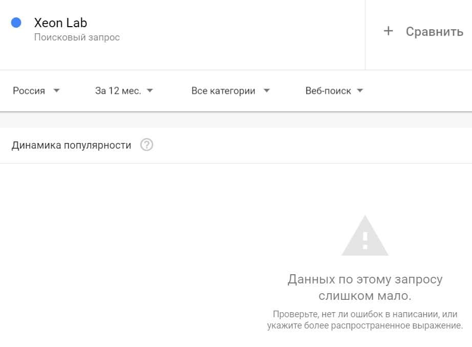 Посмотрим, насколько популярно название бренда "XeonLab", написанное на английском языке. Данных по этому запросу нет, так как в Гугл не было большого количества запросов.