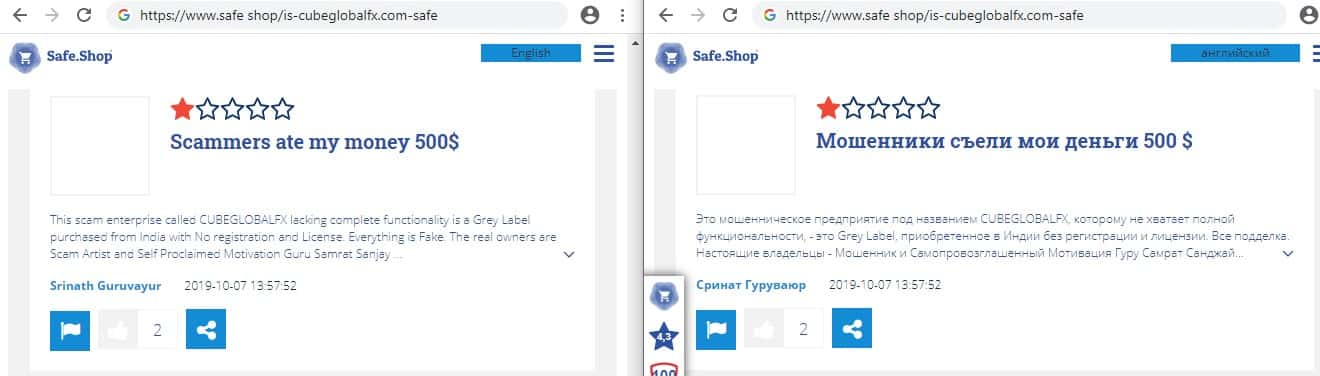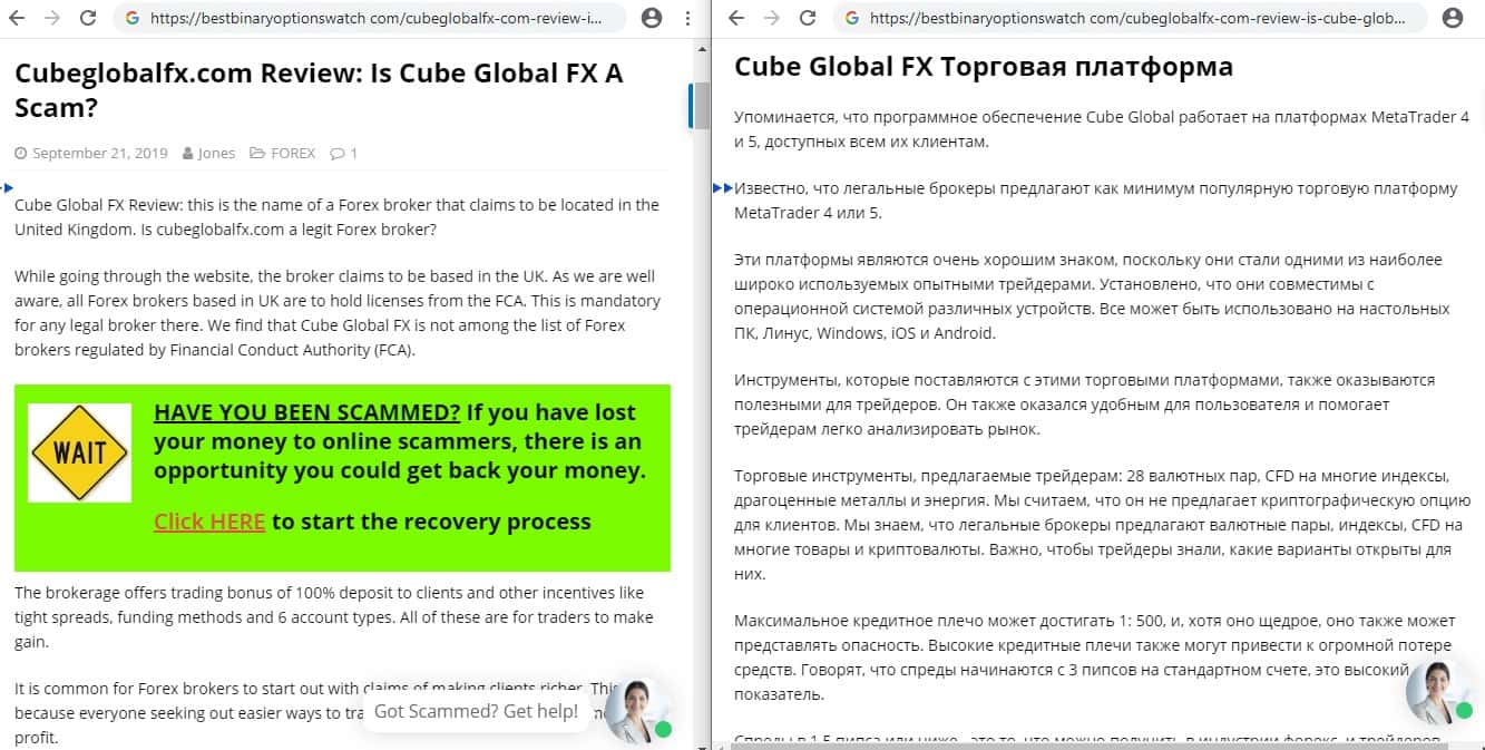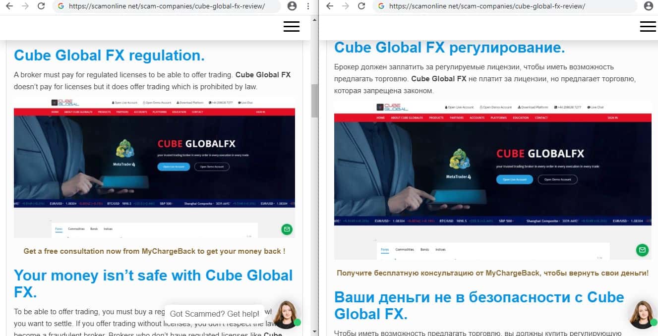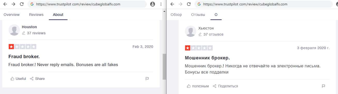 - Фальшивки компании CubeGlobalFX Моментально забирают ваши деньги