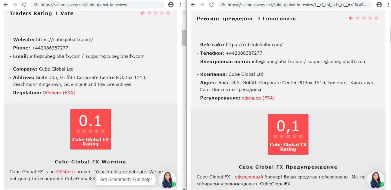- Фальшивые контакты мошенников CubeGlobalFX с помощью которых сними якобы можно связаться