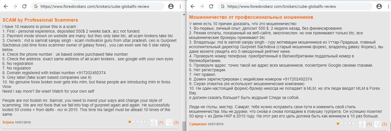 - Аферисты Куб Глобал ФХ написали самую лживую характеристику о себе