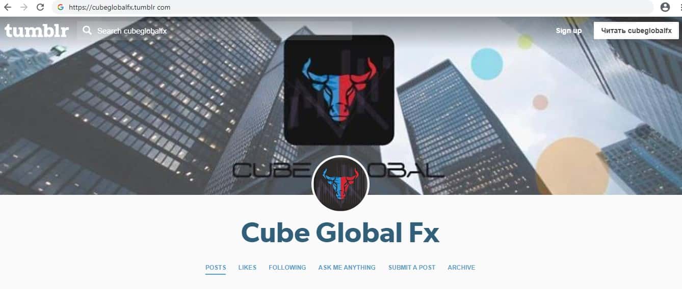 Свои лживые клешни подвальная кухня CubeGlobalFX раскинула на множество социальных сетей в интернете и исключением не стал портал тумблр, для своих фальшивых обещаний они полизывают самые грязные способы и обманы. Заполняют сайт своим бредом и пытаются привлечь в свои лживые лапы ещё больше доверчивых клиентов.