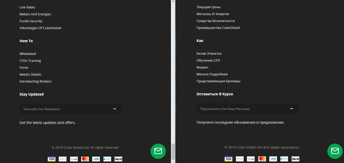 В конце своего подвального сайта компания аферистов Куб Глобал ФХ не смогла ничего придумать лучше как сделать также как и у всех сайтов мошенников, сделать перечень ненужных разделов для массовости и информацию о призрачном регулировании сайта, что не отвечает действительности. Не доверяйте мошенникам, сохраните свои деньги.