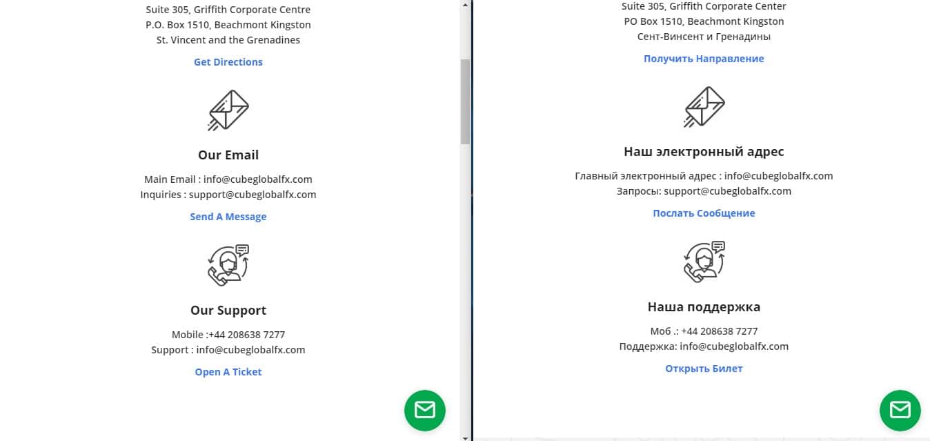 Фальшивые контакты мошенников CubeGlobalFX с помощью которых сними якобы можно связаться