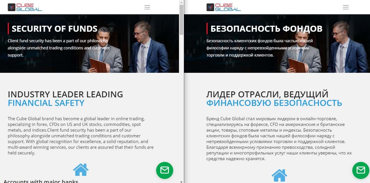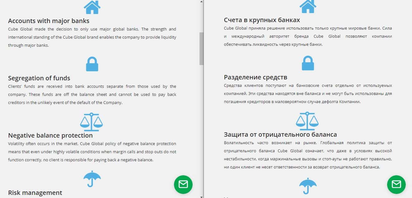 Наверное один из самых кричащих разделов на сайте аферистов CubeGlobalFX касающийся безопасности вкладов и работы с активами. Подвальная кухня которая не сделала ни одной официальной бумаги с какими либо лицензиями и распоряжениями, говорит о каких то призрачных и лживых обещаниях мнимой безопасности вклада своего трейдера.