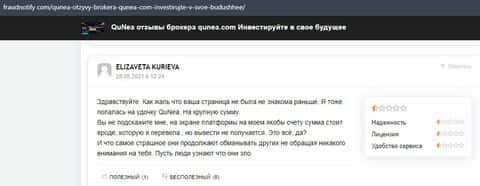 В данном отзыве клиент интересуется, как он может вывести все свои деньги, которые он по глупости вложил в мошенническую организацию QuNea. Он перепробовал уже все варианты.