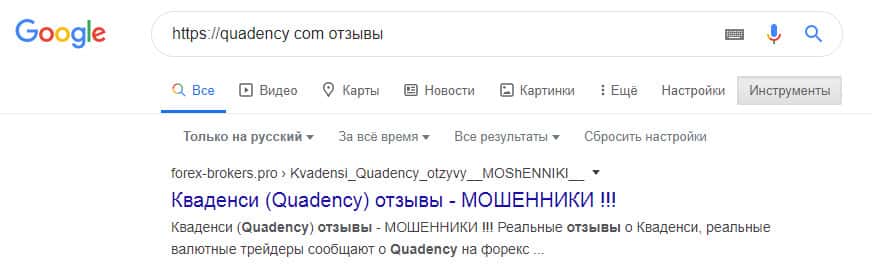Ввиду крайне сомнительной мошеннической и противозаконной деятельности лохотрона Quadency на просторах сети интернет нету никакой реальной информации о данных аферистах кроме как купленных отзывов на подвальных сайтах, что определенно говорит о крайне низкой популярности проходимцев Кваденси у пользователей сети интернет.