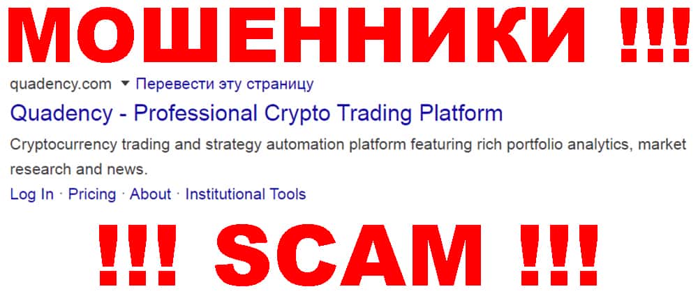 Кваденси - очередные мошенники сети интернет, которые занимаются наглым разводом наивных пользователей сети интернет под довольно банальным предлогом инвестиций, в ходе которых жулики Quadency оперативно кидают на деньги свою клиентуру. В связи с этим иметь дело и сотрудничать с аферистами Кваденси определенно не рекомендуем !!!