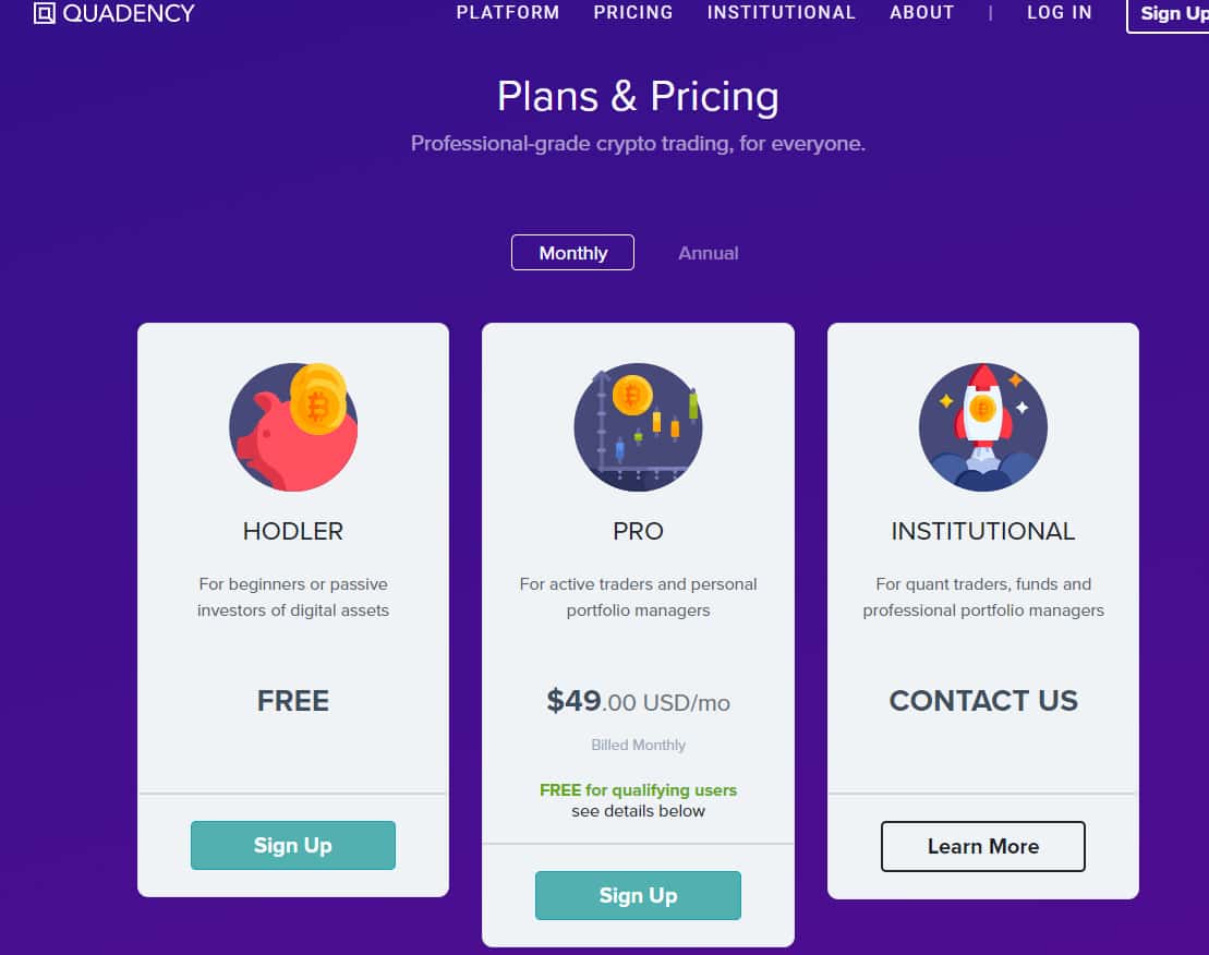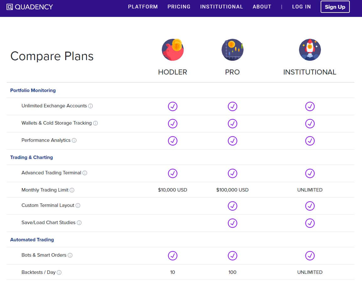 Под свои типы счетов, с помощью которых аферисты Кваденси будут пытаться содрать больше средств с пользователей, мошенники Quadency отвели отдельный раздел. Однако самих типов счетов у шулеров Кваденси довольно мало. Данный факт говорит о том, что счета были добавлены аферистами Quadency исключительно для виду.