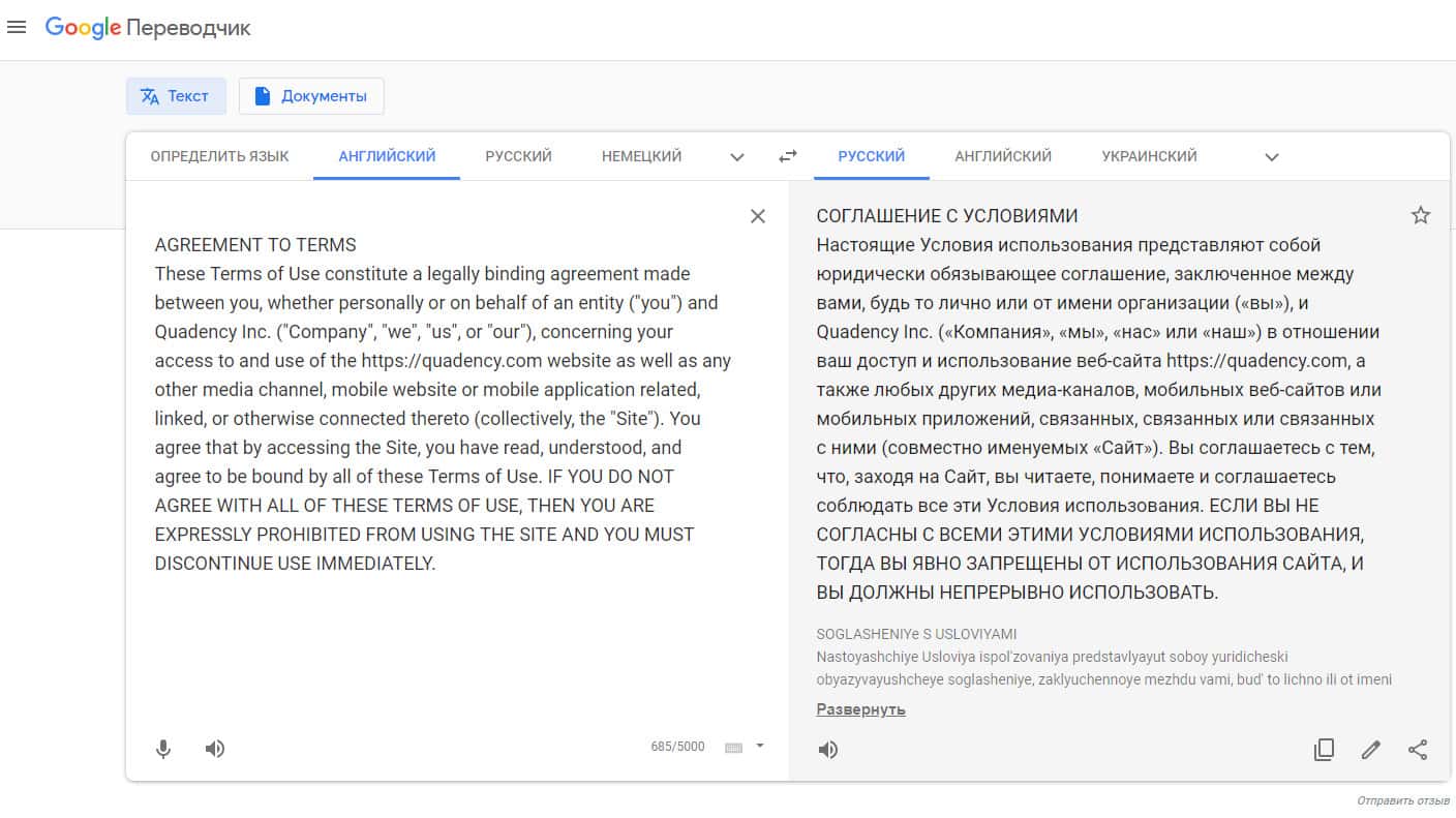 Условия сотрудничества у шулеров Кваденси начинаются со стандартной информации о том, что это за документ и зачем он нужен, в ходе которых мошенники Quadency говорят информацию о том, что клиенты соглашаются с данным соглашением фактом регистрации. На изображении, расположенном ниже, вы можете увидеть начало условий жулья.