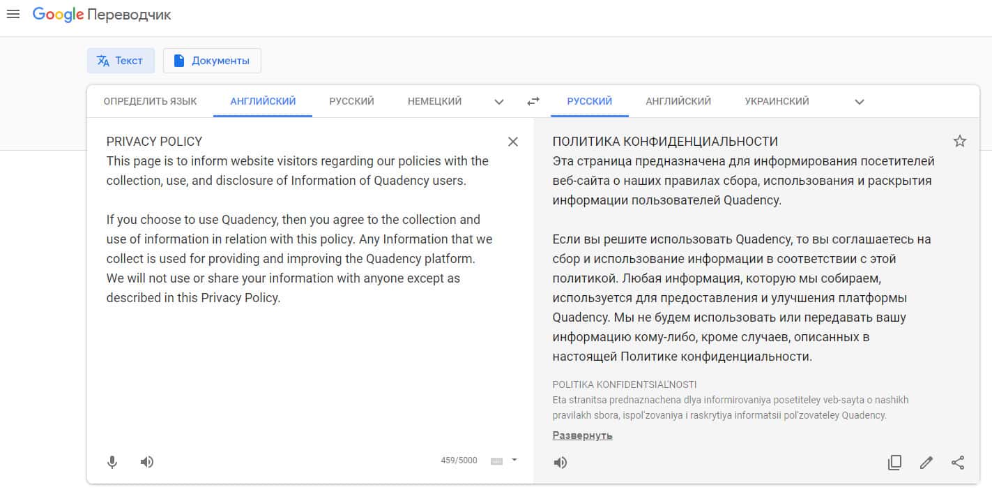 Завершается же политика конфиденциальности у аферистов Кваденси довольно типично и ожидаемо, а именно условием о том, что лохотрон Quadency может в любой момент по своему усмотрению изменить данные условия политики конфиденциальности. На изображении, расположенном ниже, вы можете увидеть окончание политики шулеров Кваденси.