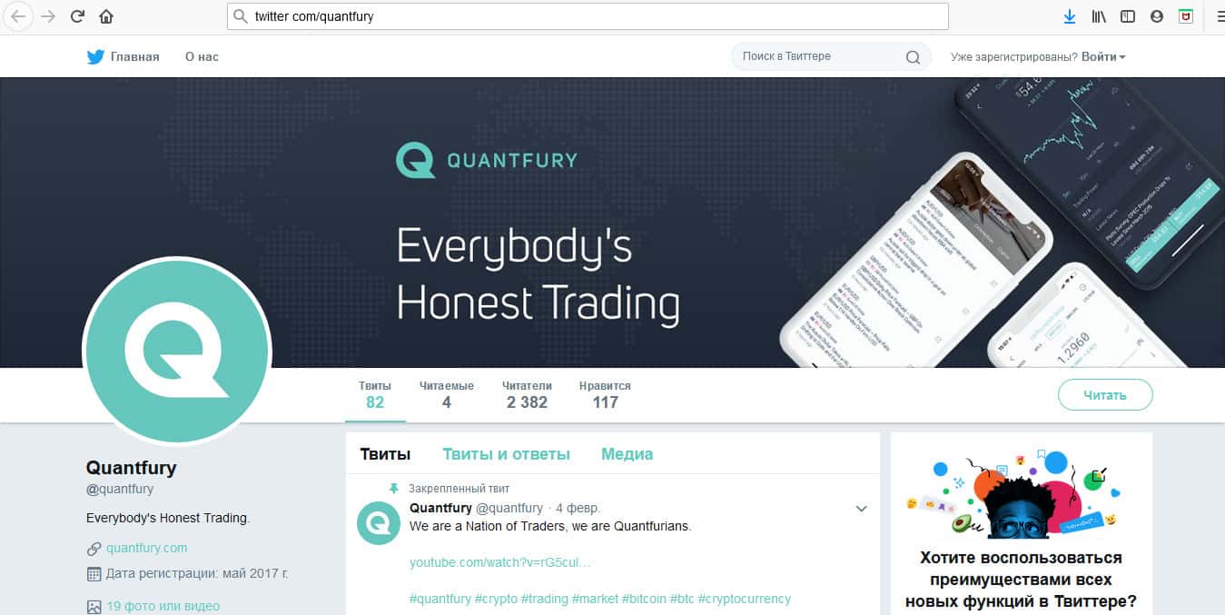 - группа мошенников в Twitter twitter com/quantfury