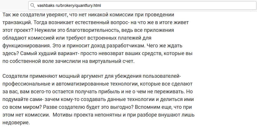 Что думает автор статьи о мошенническом проекте QuantFury?