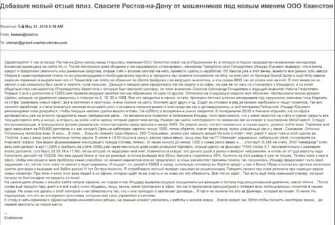 - Жалоба на мошенническую контору Квинстон (ГрандКапитал)