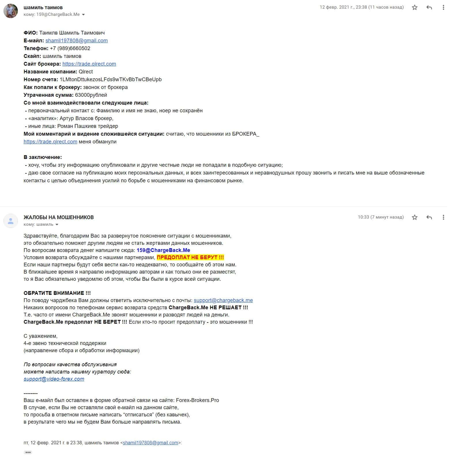 Далее предлагаем ознакомиться с отзывом о мошенниках Qirect, которые в очередной раз развели клиента на деньги, доверять данному скам-брокеру нельзя.