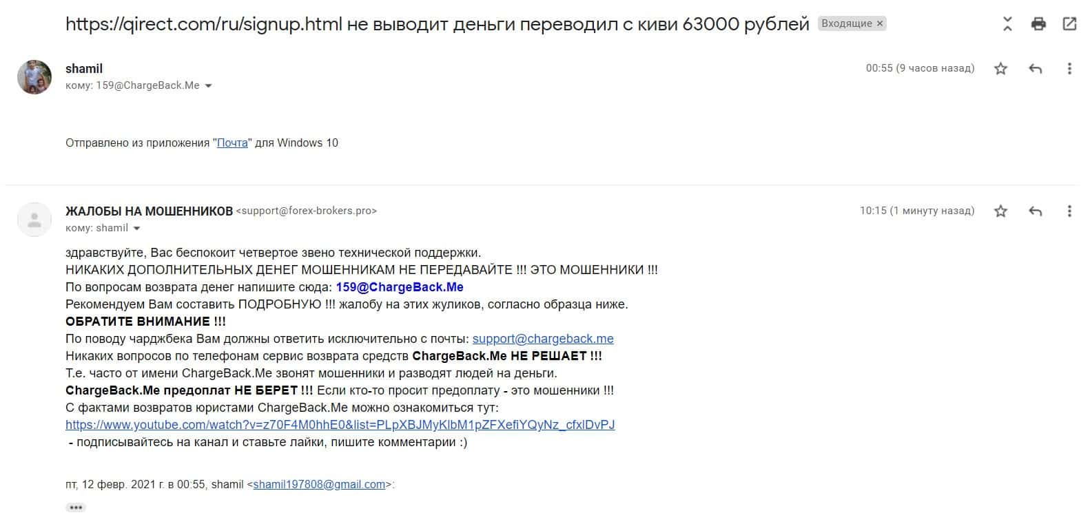 На почтовый адрес по сбору информации о мошенниках на рынке Форекс пришла жалоба на псевдо-брокерскую контору Кьюирект.