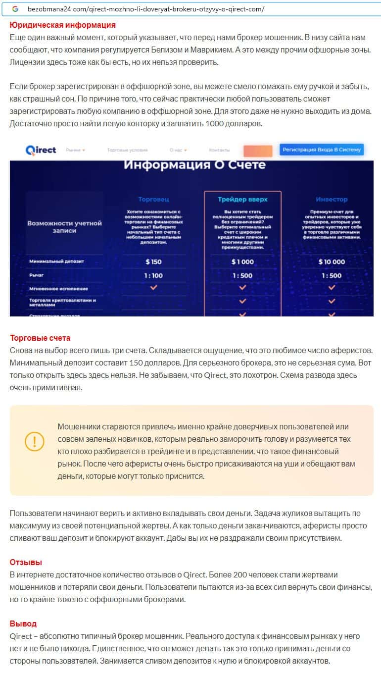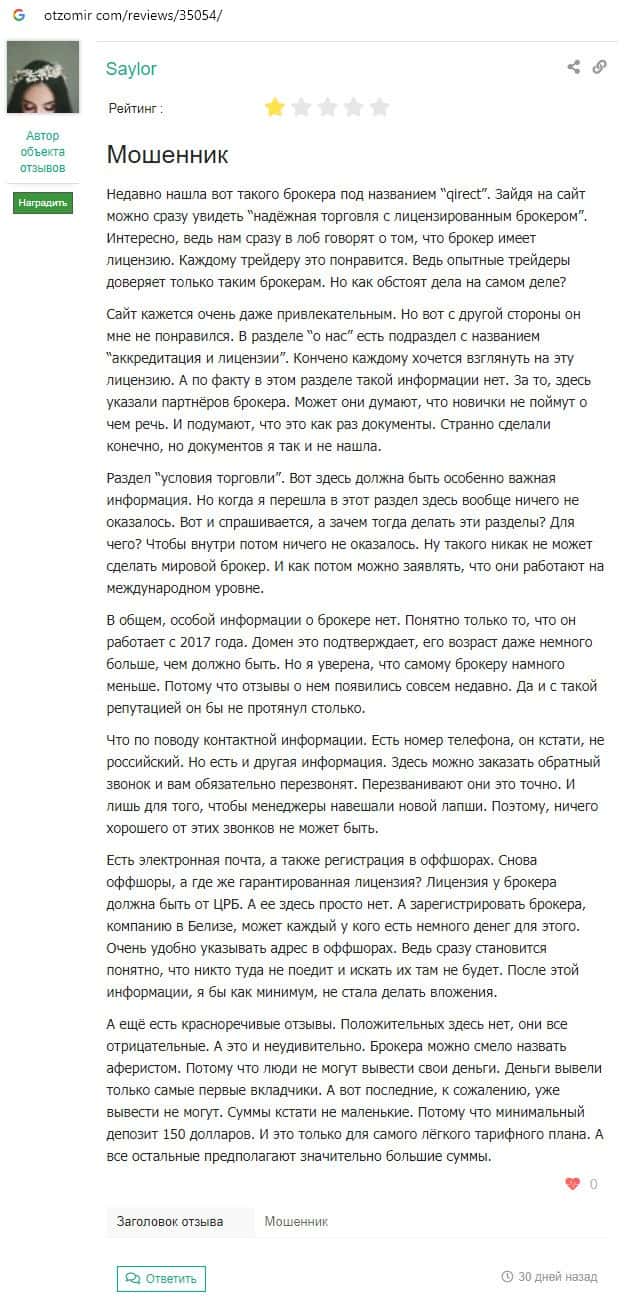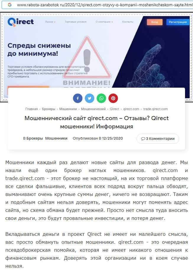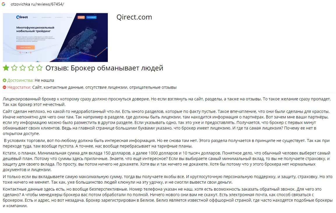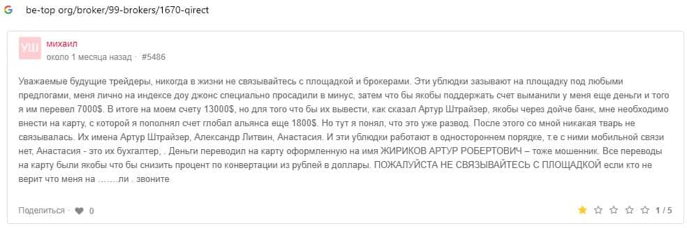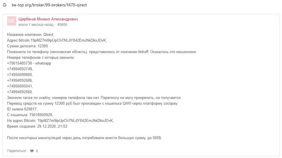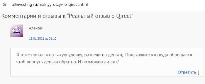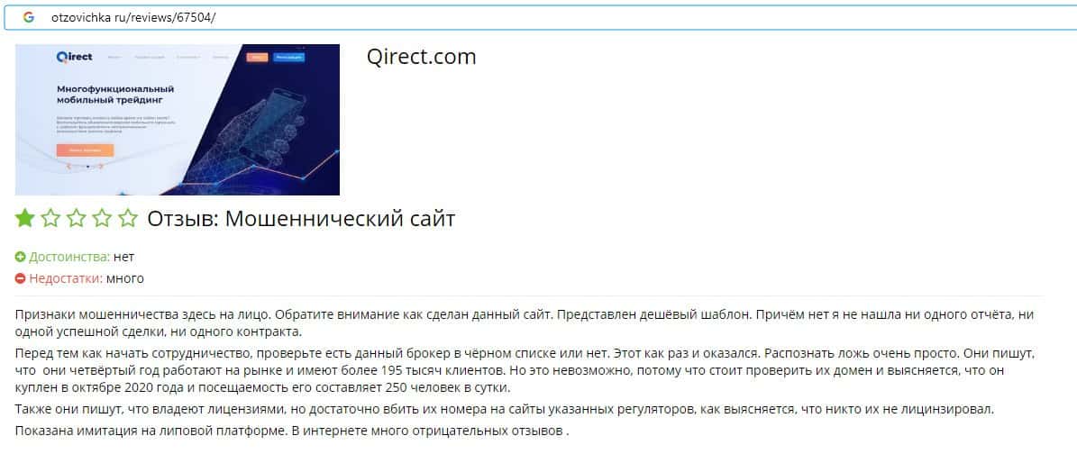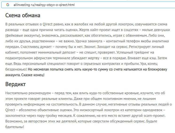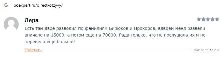 Qirect - обзоры аферистов на других онлайн-ресурсах