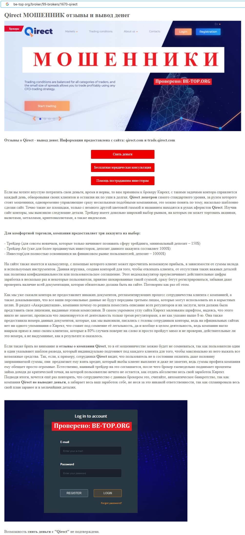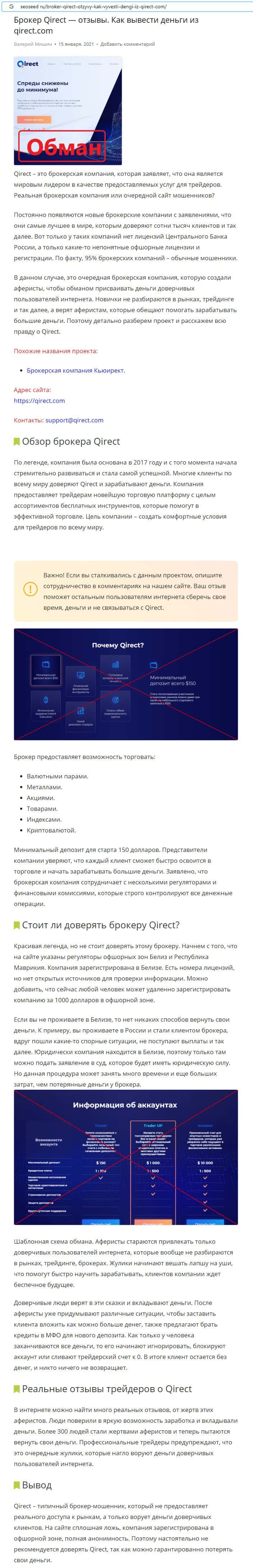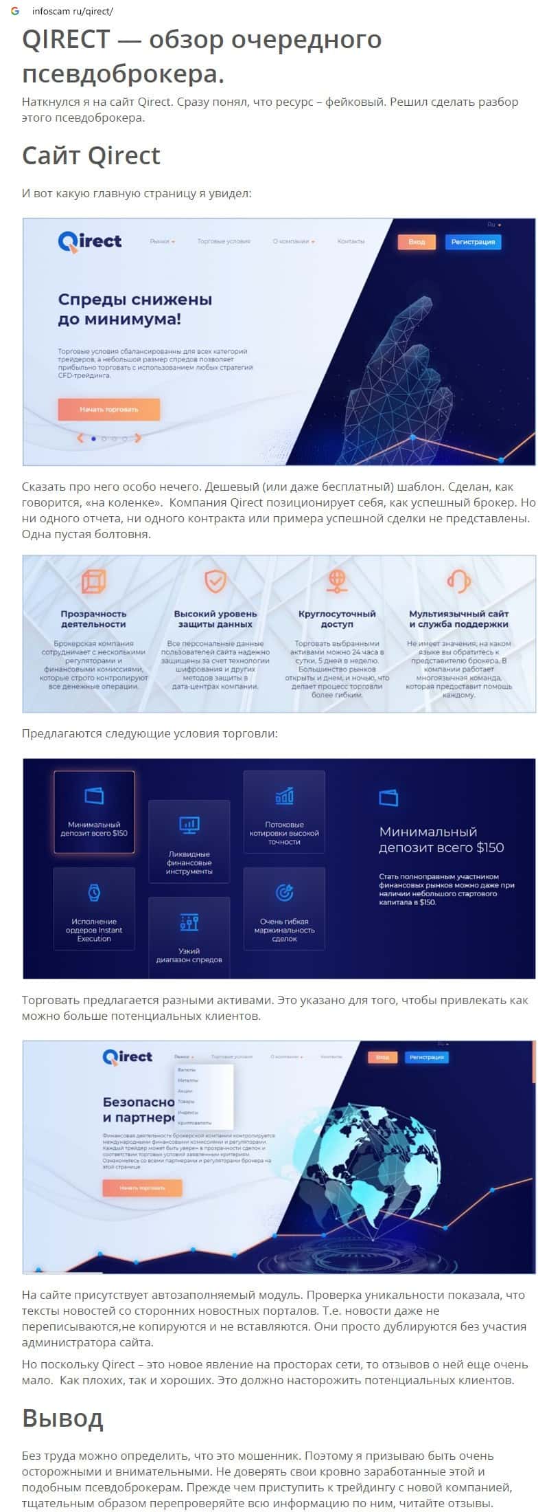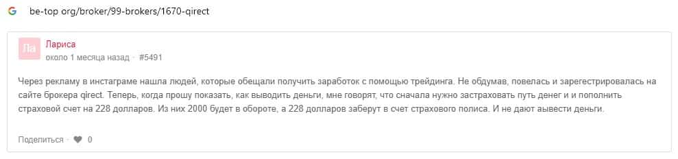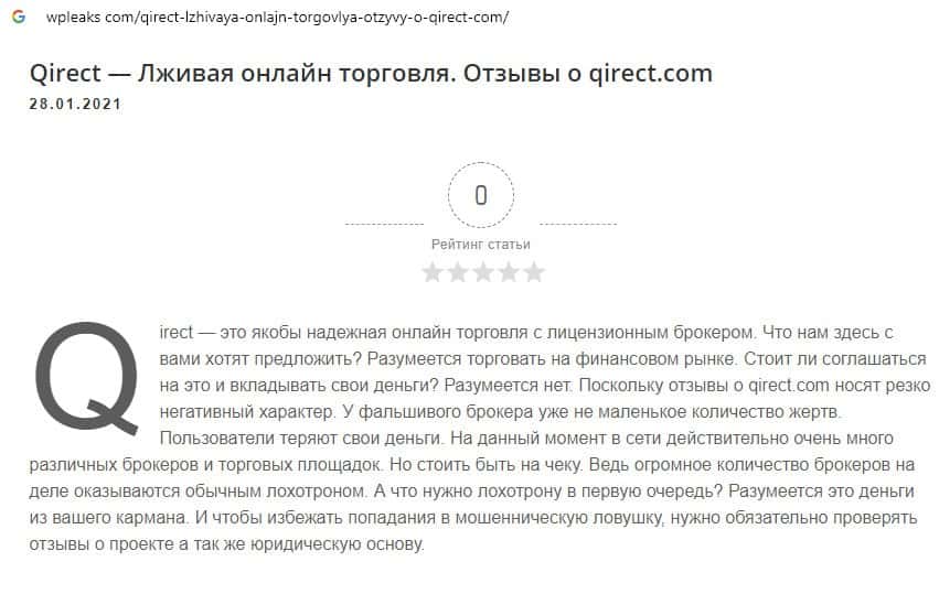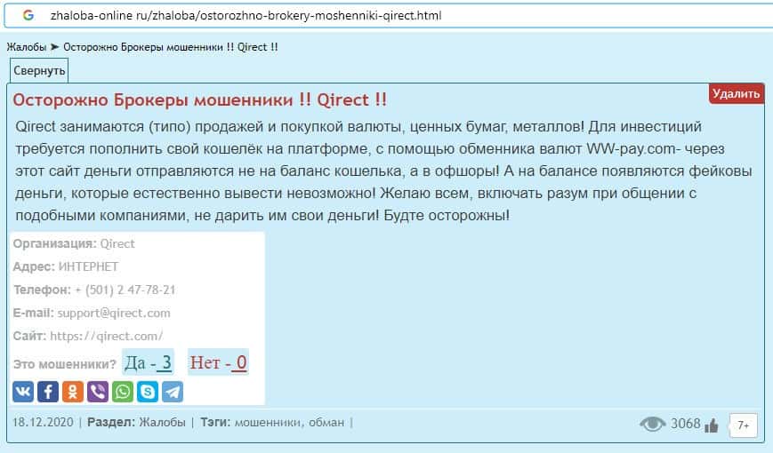Qirect - обзоры аферистов на других онлайн-ресурсах