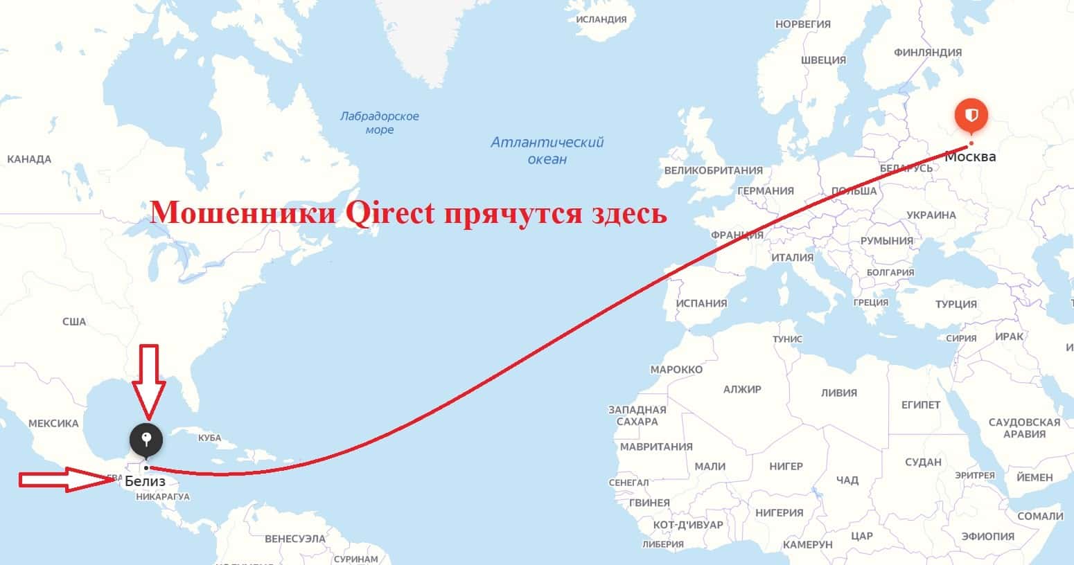 Местом регистрации скам-конторы Qirect является оффшорное государство Белиз, где зарегистрировано огромное количество аналогичных онлайн-лохотронов.