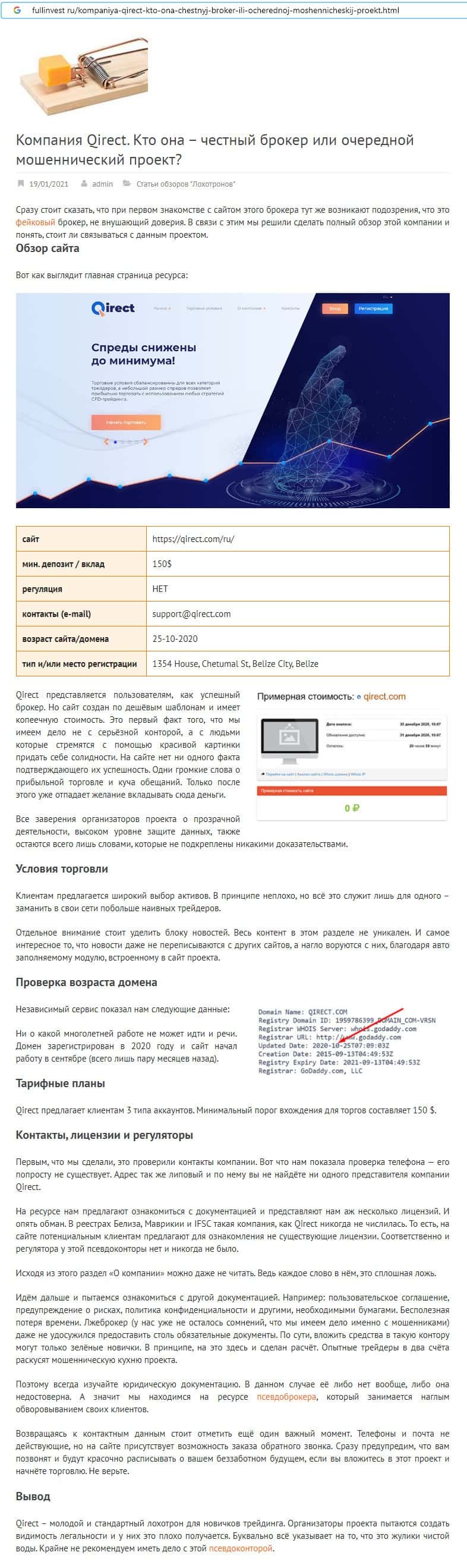 - Отсутствие информации о руководстве жульнической конторы Qirect