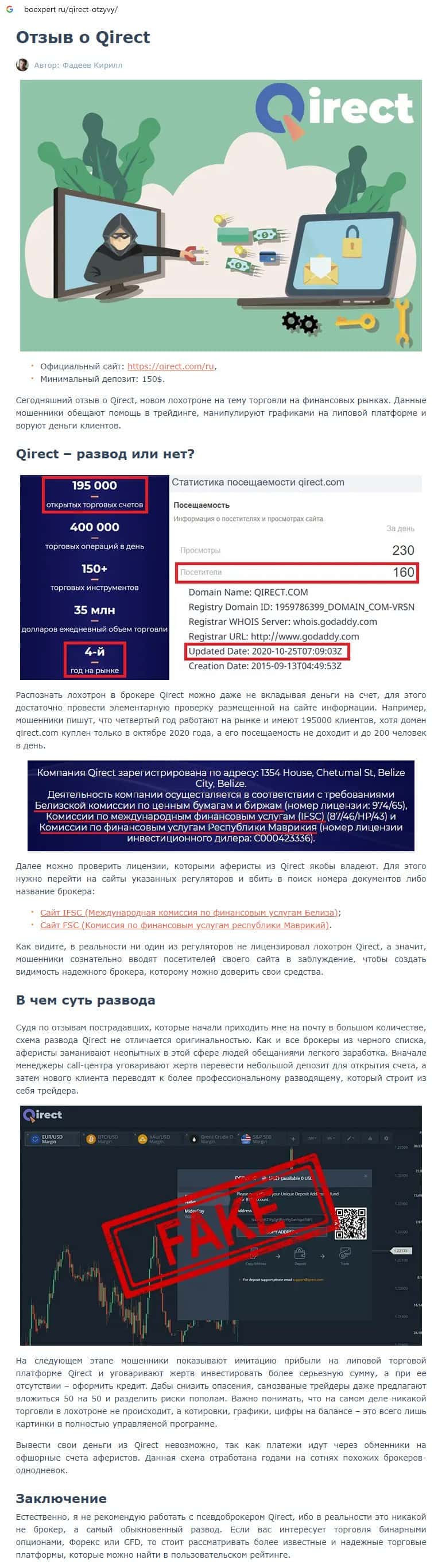 - Автор, редактор и источники информации статьи о псевдо-брокере Кьюирект