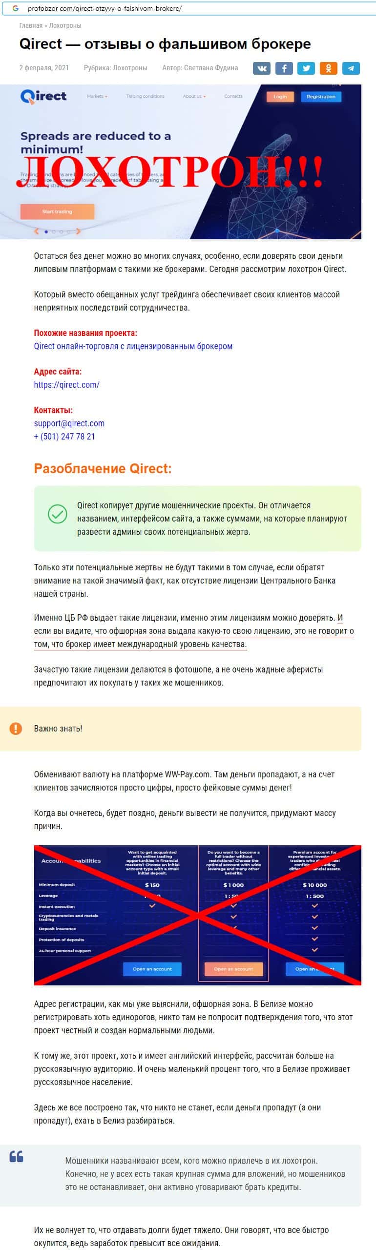 Далее предлагаем ознакомиться с информацией о том, что нужно быть осторожными со скам-организацией Qirect, которая обманывает людей на деньги.