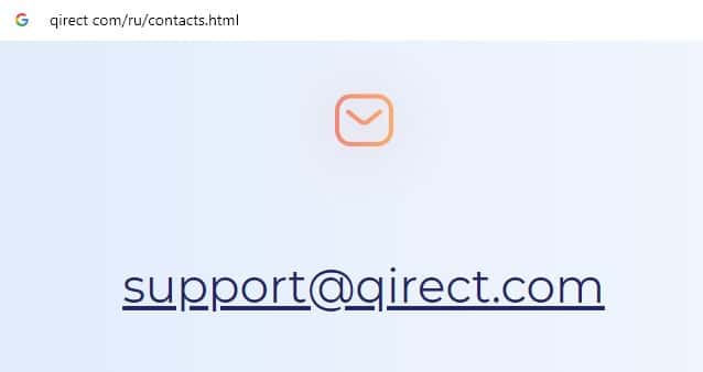 Аферисты Кьюирект на своем официальном онлайн-ресурсе указывают адрес электронной почты, а именно: