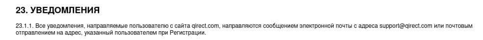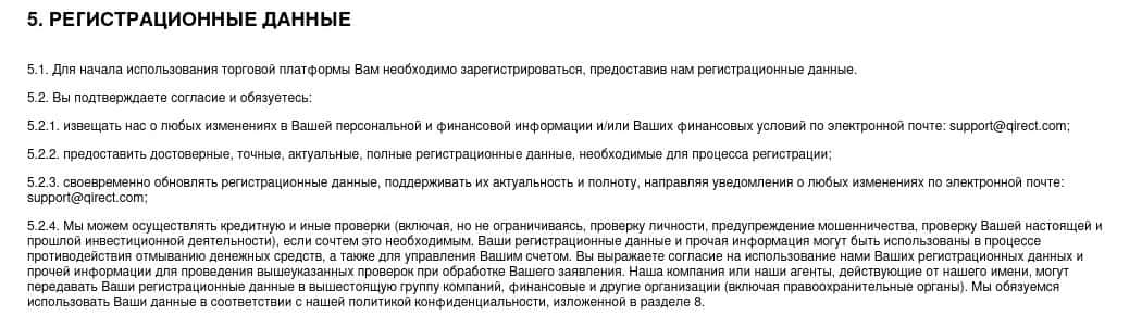 На веб-сервисе мошеннической организации Qirect предоставлено стандартное клиентское соглашение как у прочих лохотронов, которые разводят людей на деньги.