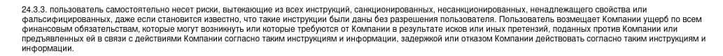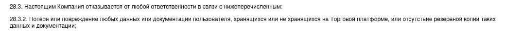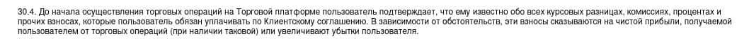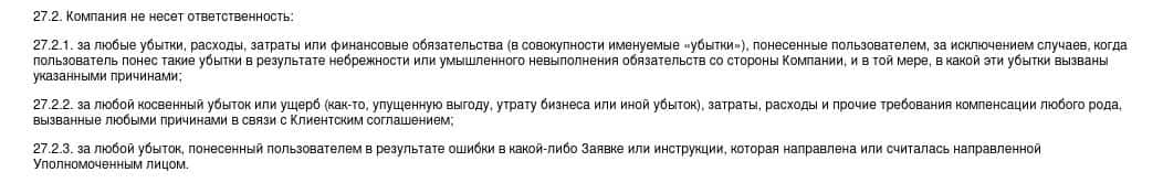 Согласно тому, что аферисты пишут в соглашении, скам-организация Qirect не несет никакой ответственности за не полученную прибыль клиентом, а также за возможные убытки.