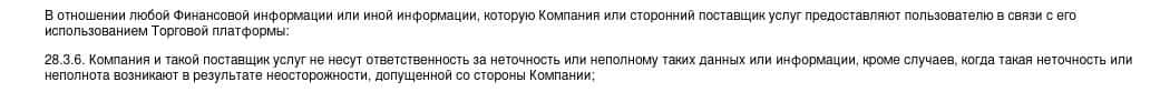 Скам-брокер Qirect ни за что не несет ответственности, о чем свидетельствует данный пункт в пользовательском соглашении компании.