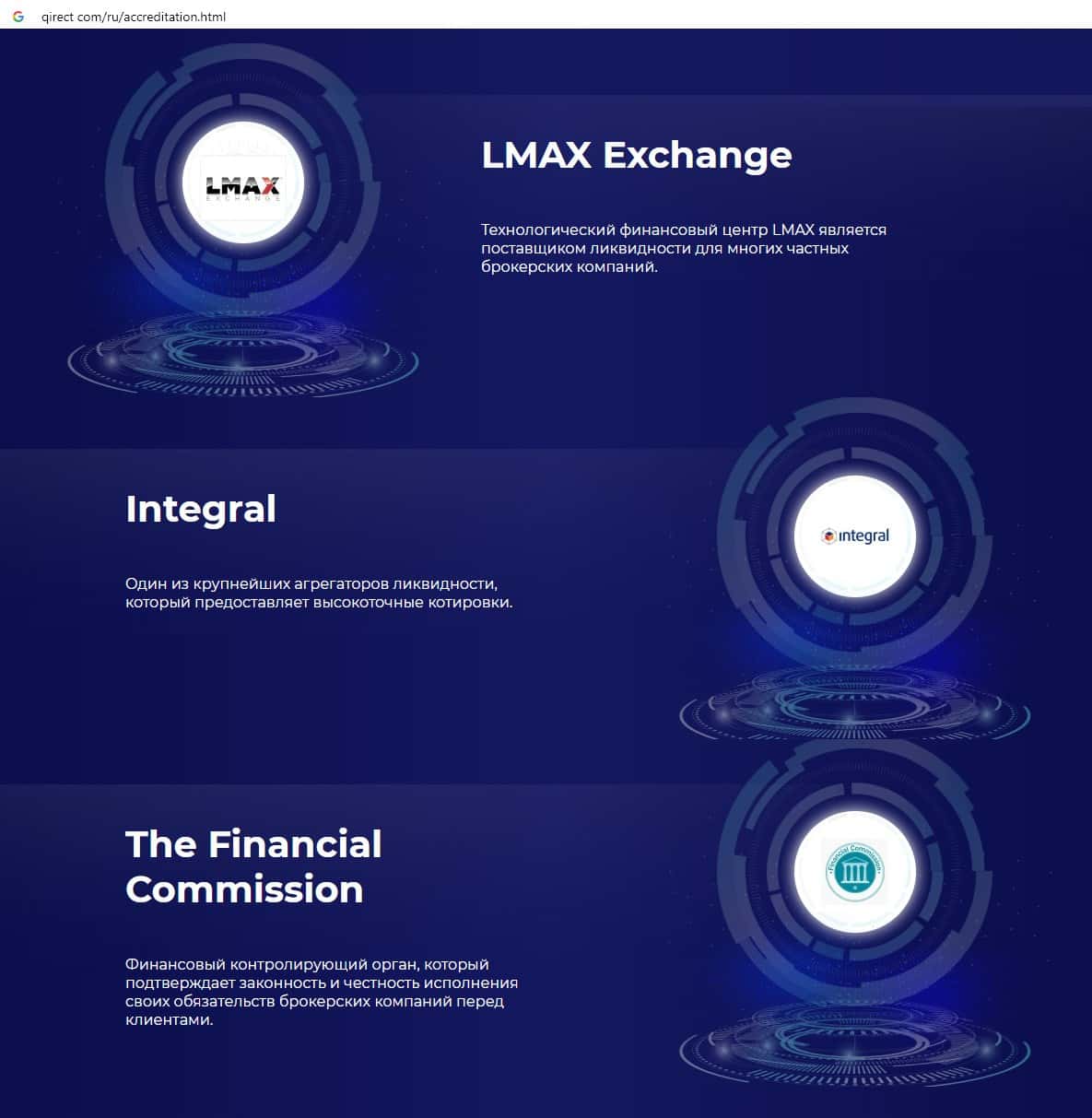 Шулера Qirect также разместили логотип мошеннической организации Integral Com, которая разводит людей на деньги.