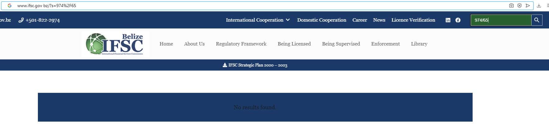 На официальном сайте финансового регулятора Белиза ifsc gov bz отсутствует информация о регистрационном номере предоставленном на интернет-портале конторы Qirect.
