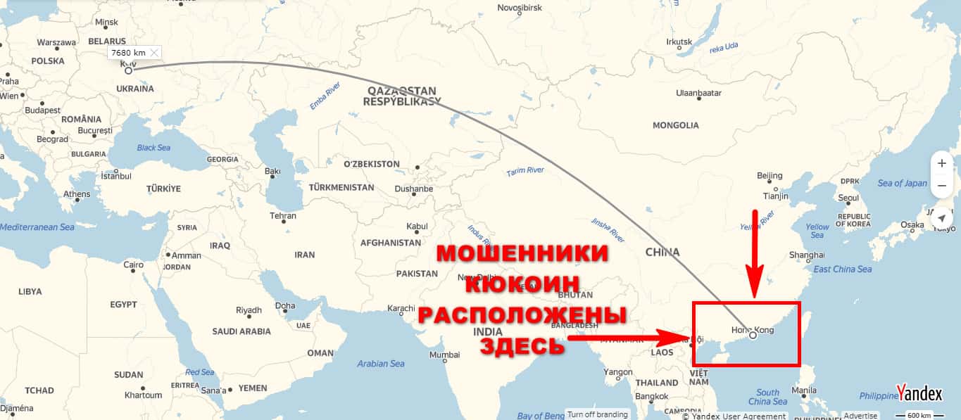 Из сторонних источников нам стало известно, что криптовалютный лохотрон Кюкоин имеет прописку в Гонконге и соответственно она является оффшорной конторой. Так им проще и не нужно нести ответственность за содеянные преступления, а также можно спокойно вывести деньги в оффшор и не платить налоги.