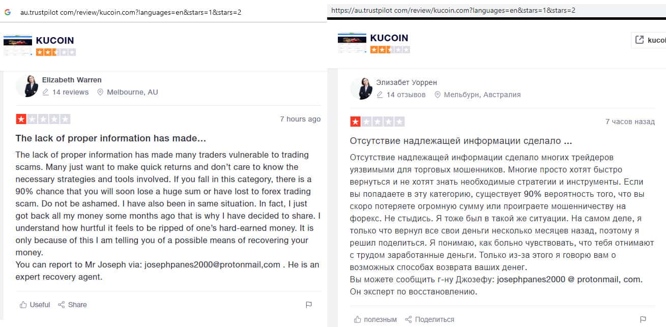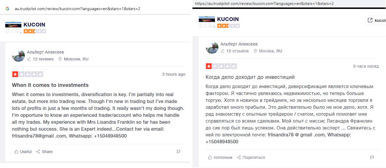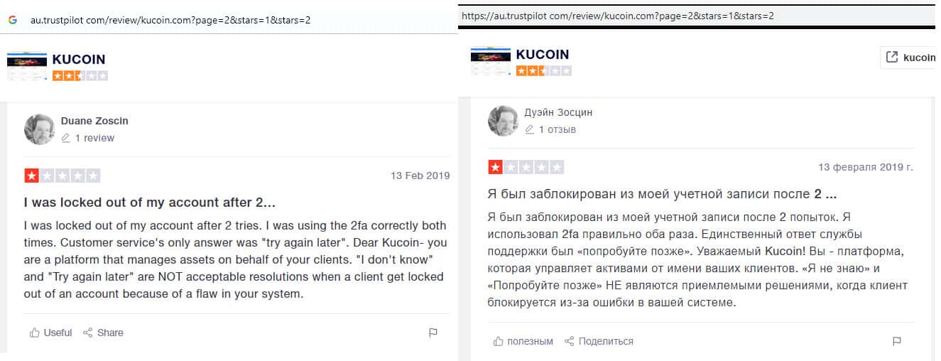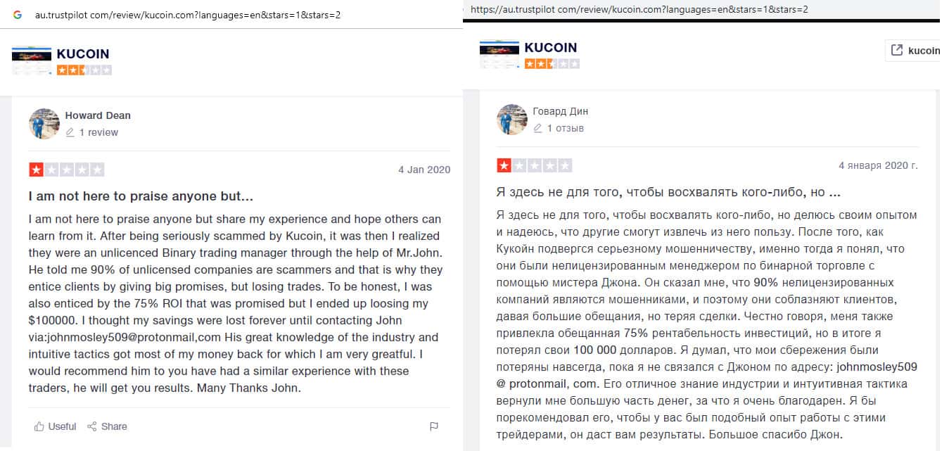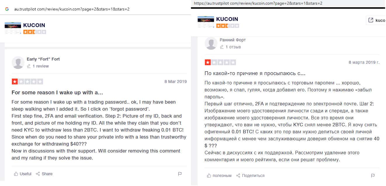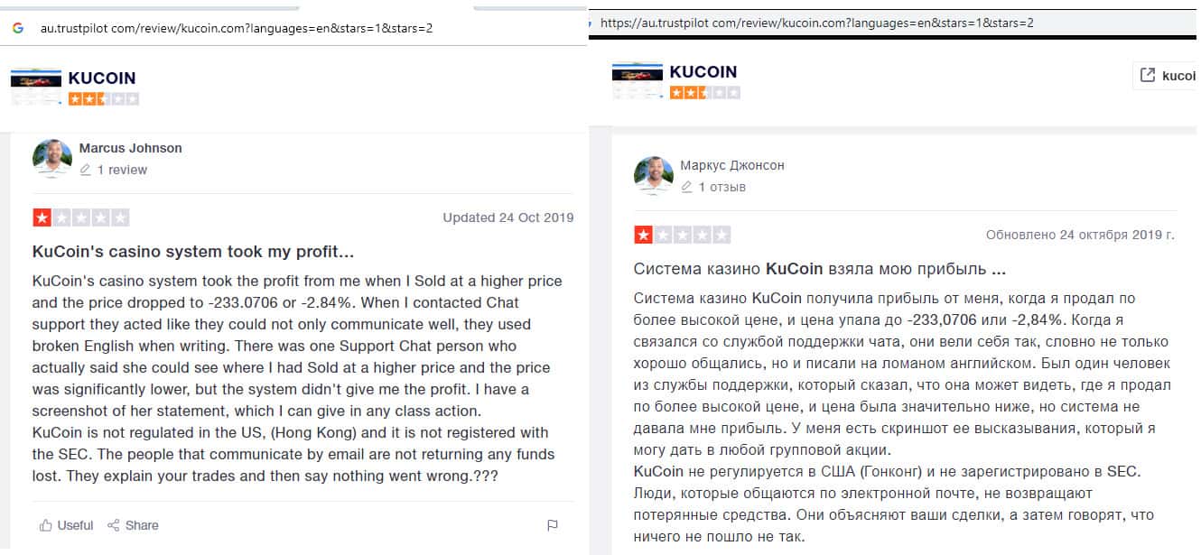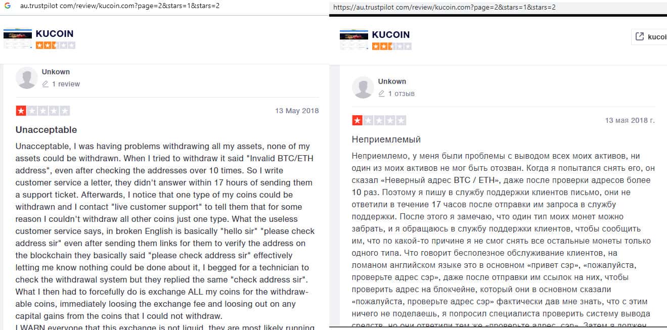 - Отрицательный отзыв о работе крипто-лохотрона KuCoin