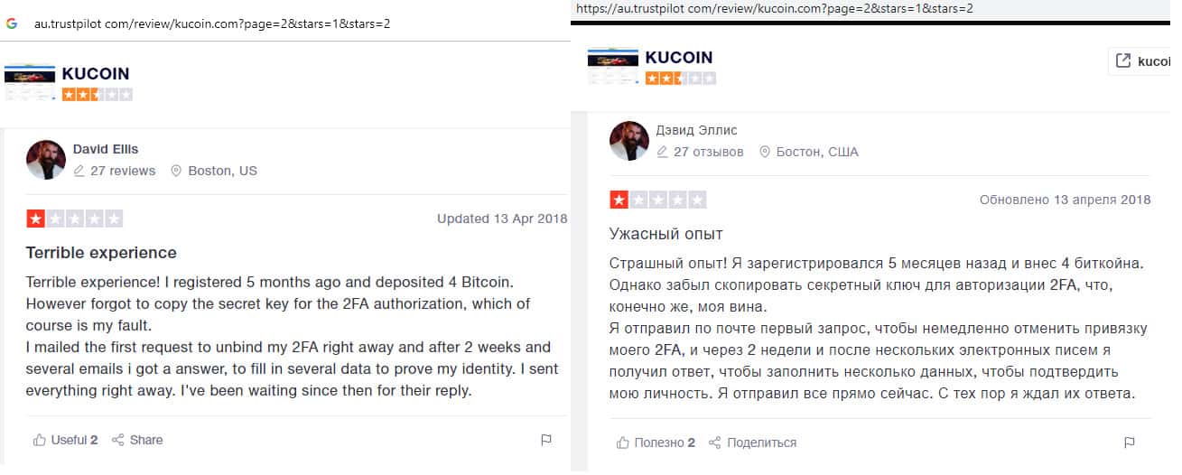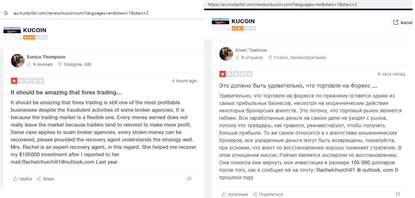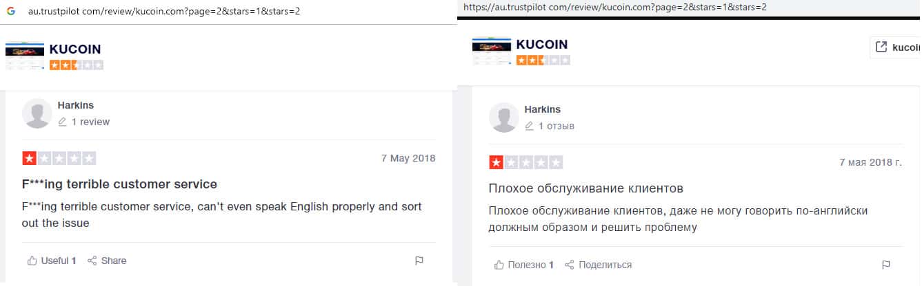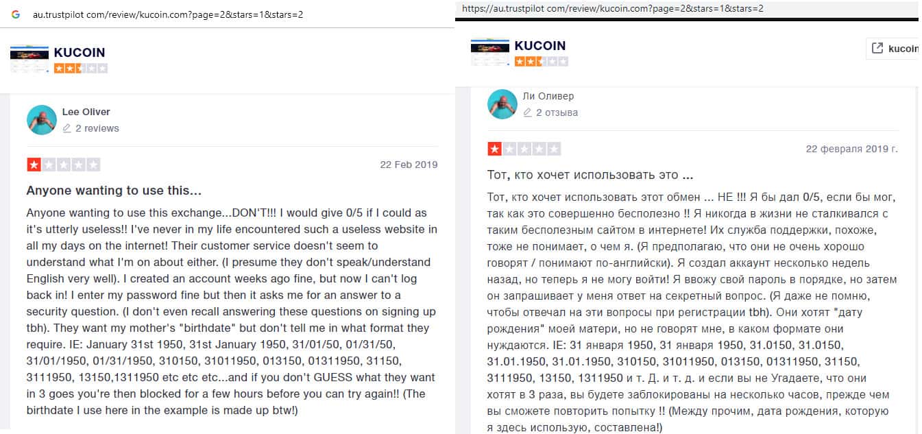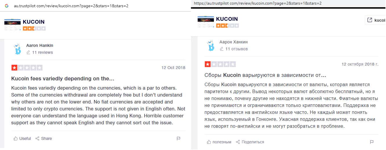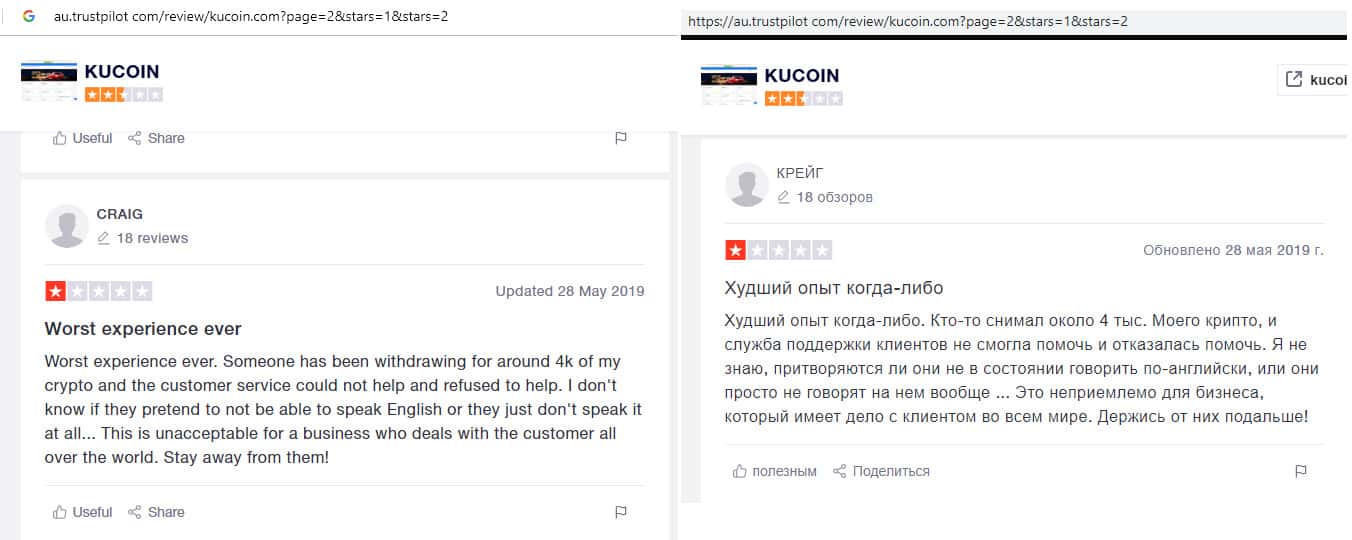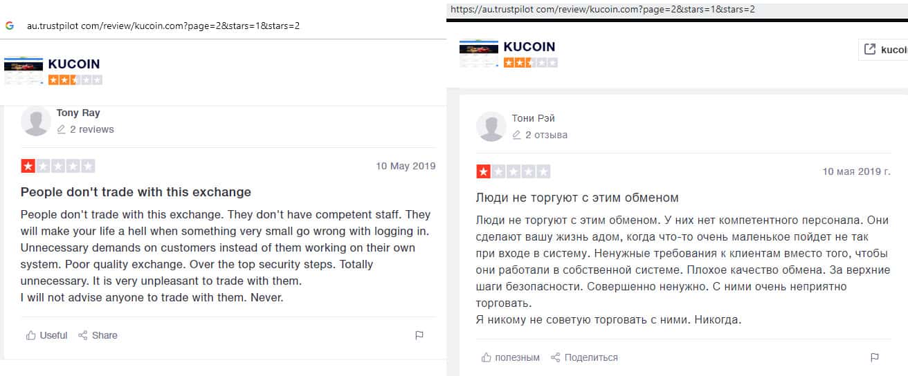 Согласно отзывам, которые размещены в интернете о кухне KuCoin, жулье скрывает в некотором смысле реальные мнения о себе. Различными способами они чистят интернет-пространство, дабы на первых порах репутация не загнулась. А вот то, что они плохо обслуживают клиентов этого то не скроешь, впрочем можно и самому в этом убедиться.