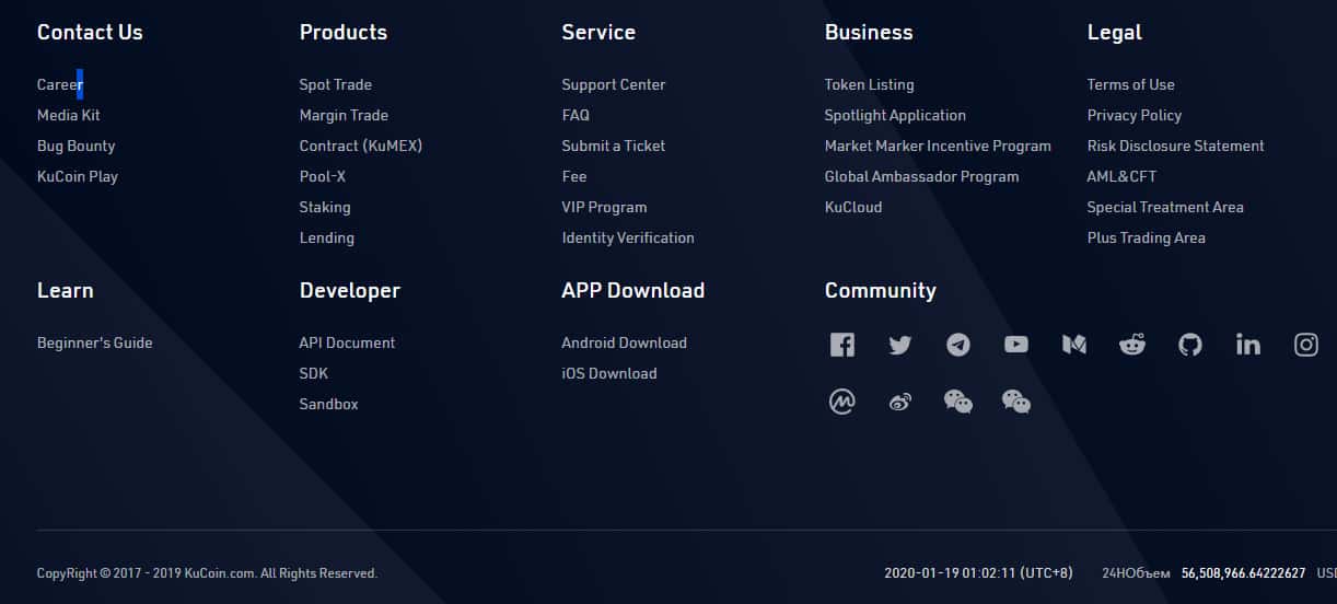 Чтобы привлекать как можно больше лохов в свою паству, мошенническая криптовалютная биржа KuCoin начала активную деятельность в социальных сетях, где создала различные группы и аккаунты. Чтобы вы не попались, следует перечислить эти социальные сети: Фейсбук, Твиттер, Телеграм, Ютуб, Медиум, Реддит, ГиХаб, ЛинкедИн, Инстаграмм.