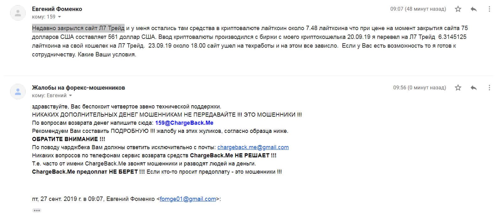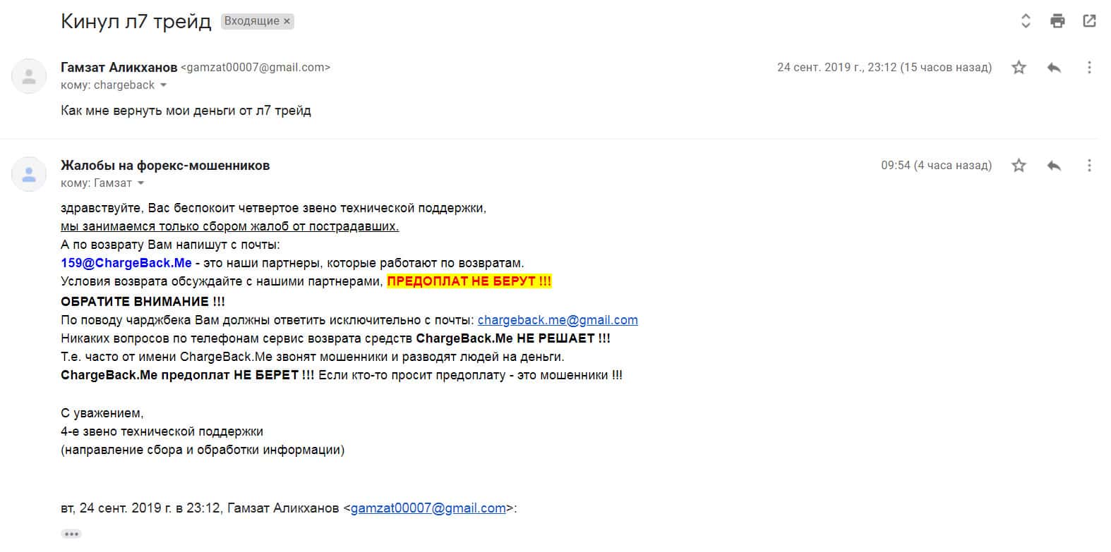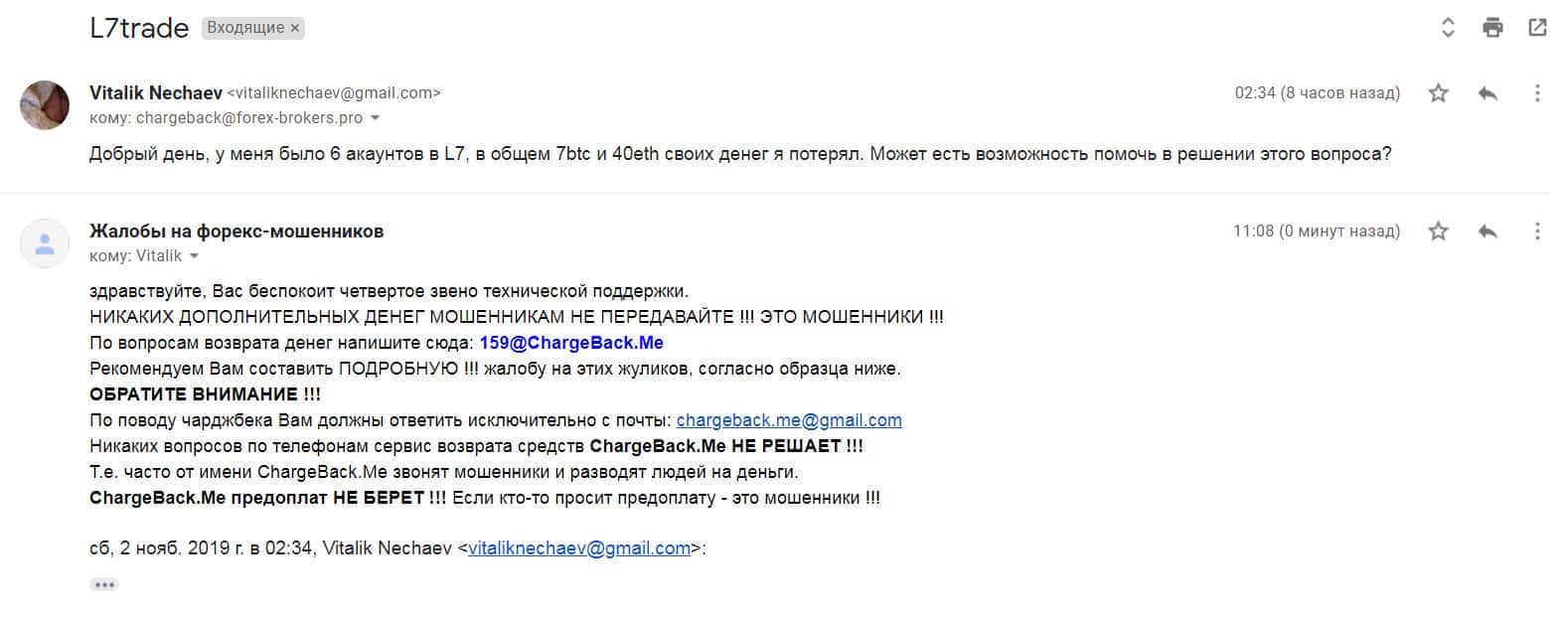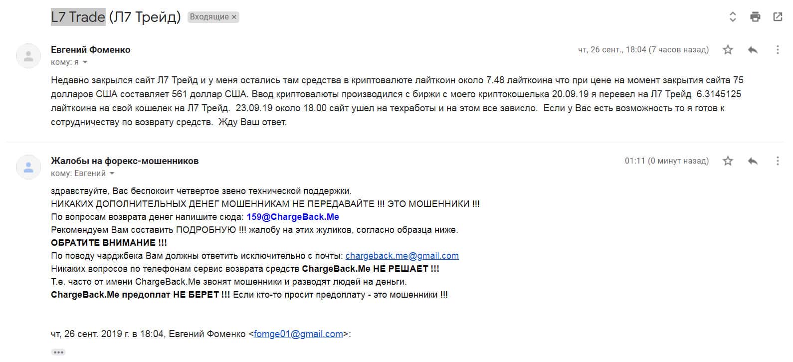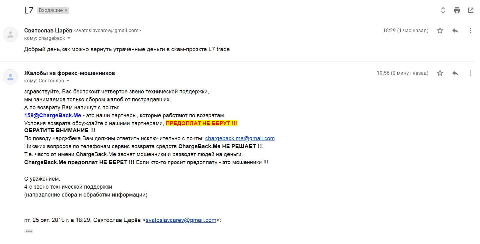 Жалоба на аферистов Л 7 Трейд от очередного пострадавшего